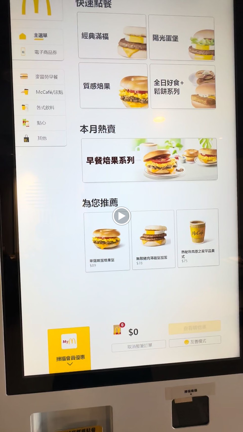 有便利自助點餐機器,店員結帳時也會協助客戶確認享有優惠的套餐做變更,為客戶設想的服務很好。有現場看號碼取餐機制功能很好,相較於部分分店採店員喊叫方式取餐,這看號取餐機制相對於客戶和店員都是非常好辨識的方式。