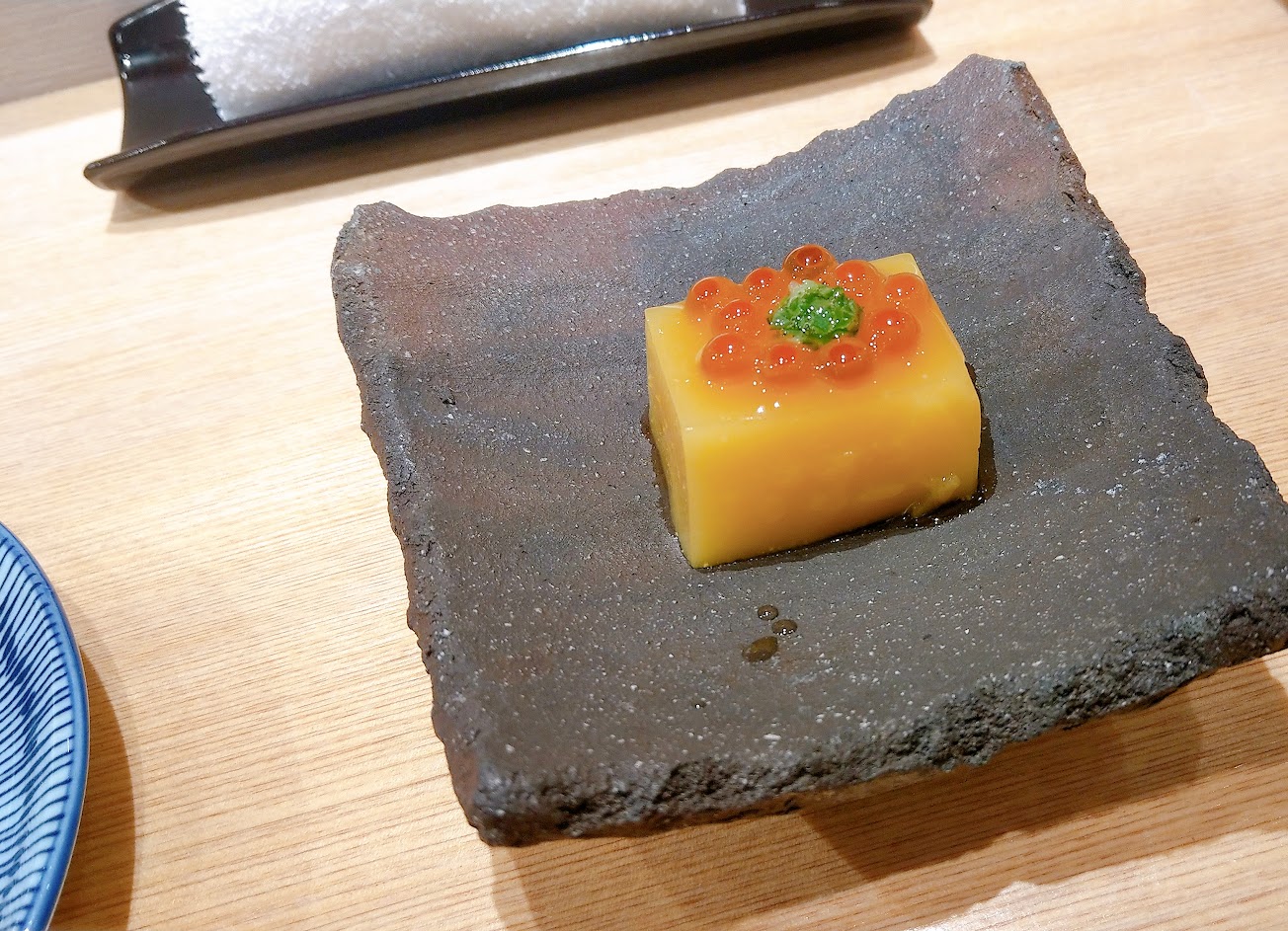 我個人感覺整體吃下來我更喜歡的,師傅那畫龍點睛的調味像是有一個自制的醋蛋鬆、柚子胡椒、醬汁等等都可以讓我更加體驗到海鮮的鮮甜滋味,並帶有師傅的巧手跟創意在當中。