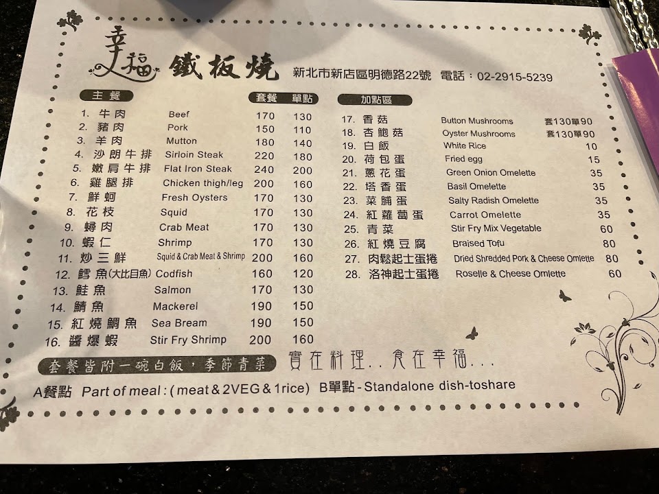 2024最新在地推薦餐廳的菜單_幸福鐵板燒(店休請看臉書粉專)的菜單、圖片