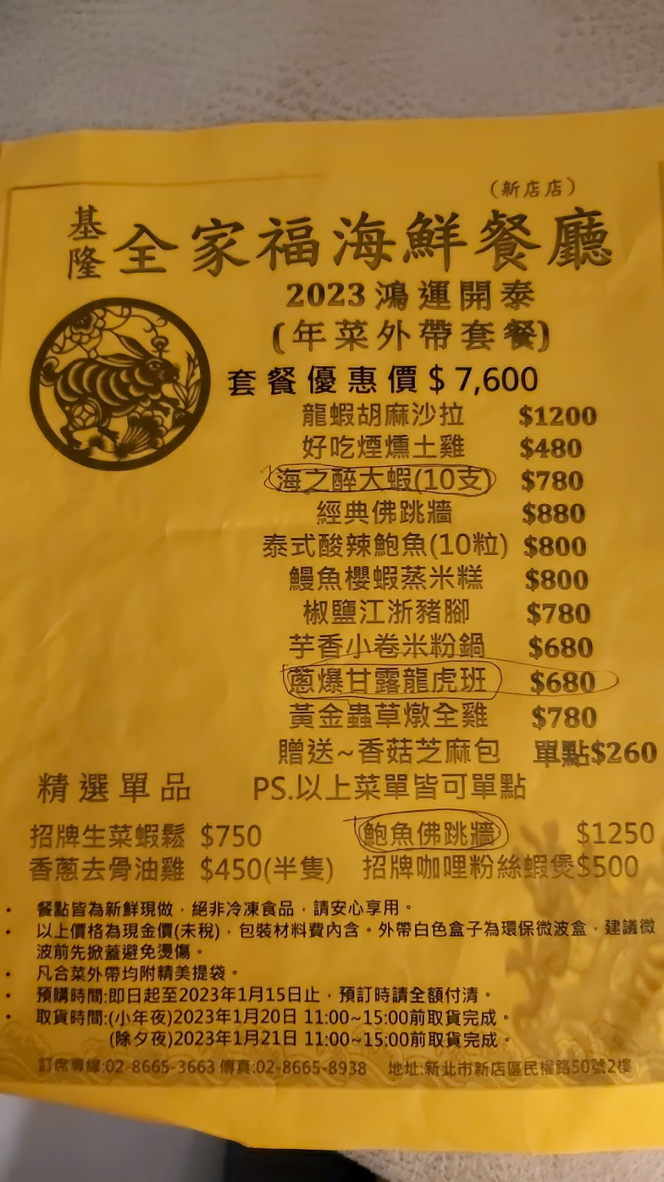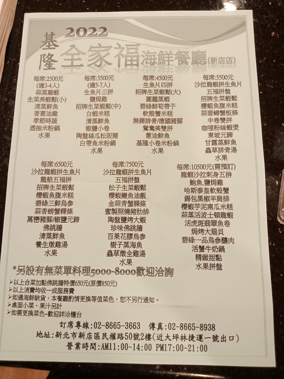 2024最新在地推薦餐廳的菜單_全家福海鮮餐廳新店分店的菜單、圖片