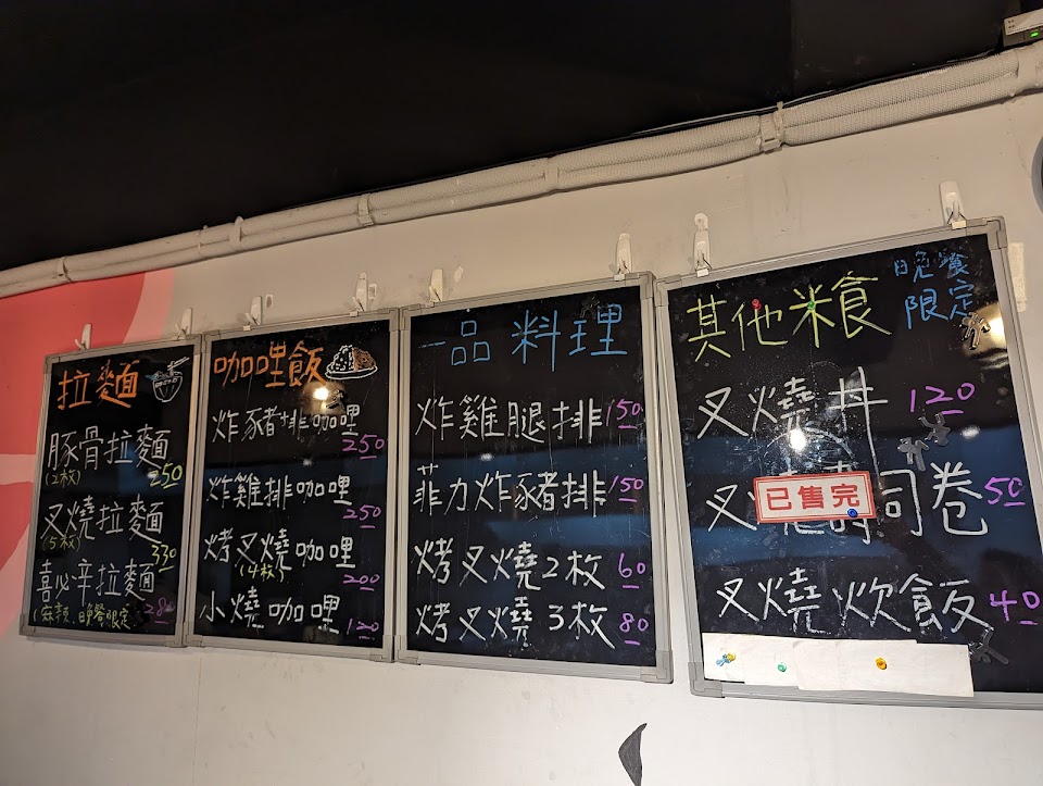 ▎拉麵名稱/價格:叉燒拉麵/320,炸豬排咖哩飯/250