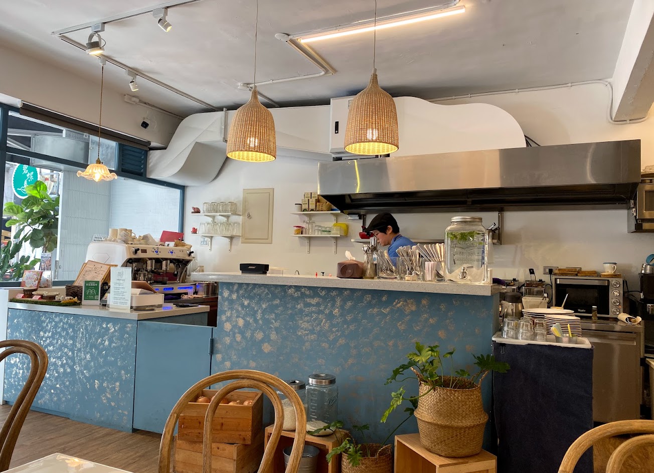 店內風格比較偏向北歐居家風格,到處可看到綠色的植物,看起來很舒適,(但位子距離太近了,好像是家人座在旁邊又不認識隔壁的感覺)。