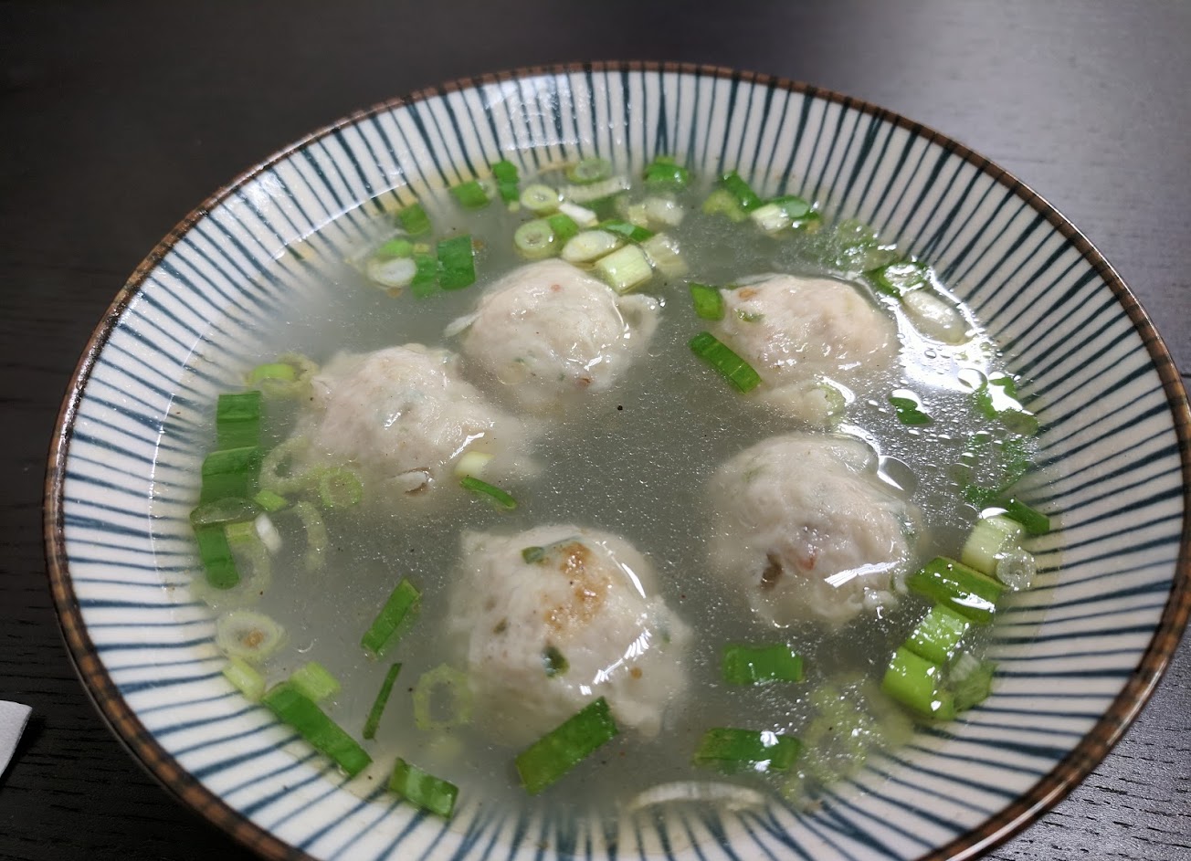 魚丸湯的湯頭很清爽很搭配乾麵,加上有開冷氣!加分!加分!