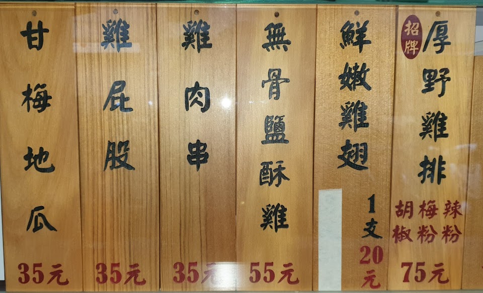 肉汁鮮美,新出的甘梅地瓜非常好吃,雞翅、雞排都大推,真的很棒,附近有這麼好吃的炸物店~~