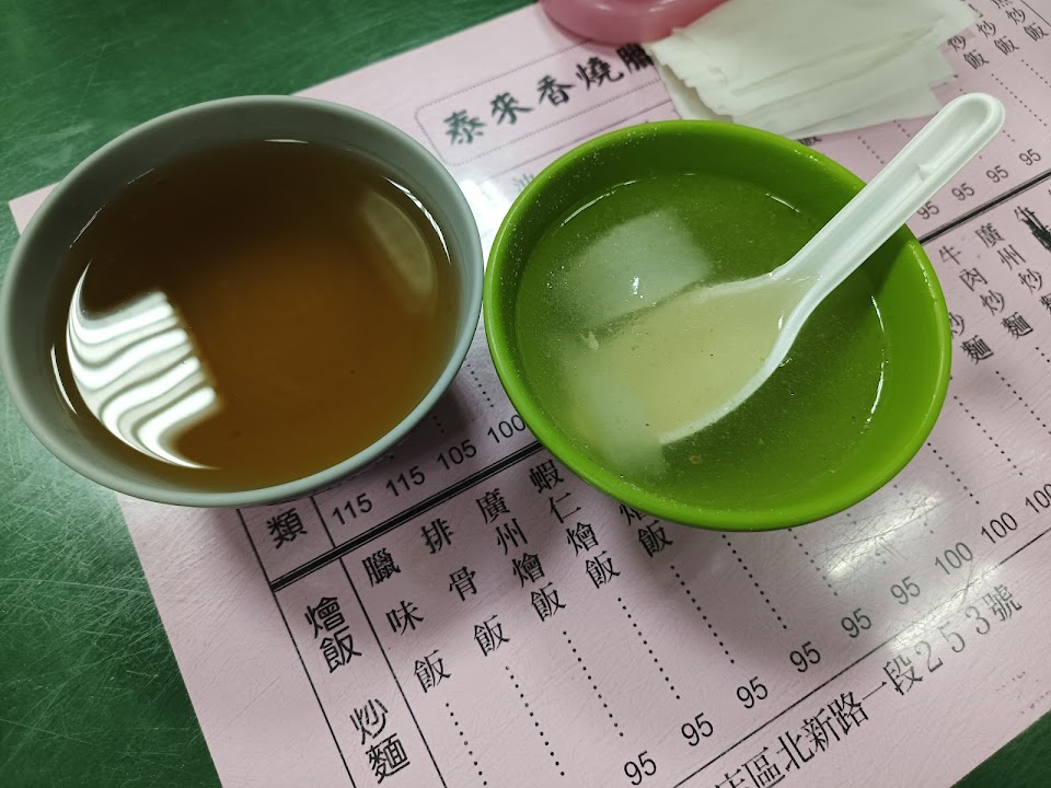 配菜碰運氣,不過至少一定會有1道蔬菜,大多情況是2道;免費的湯感覺油膩了些,主菜組合選擇多,生意挺好的,喜歡燒臘的人可以一試。