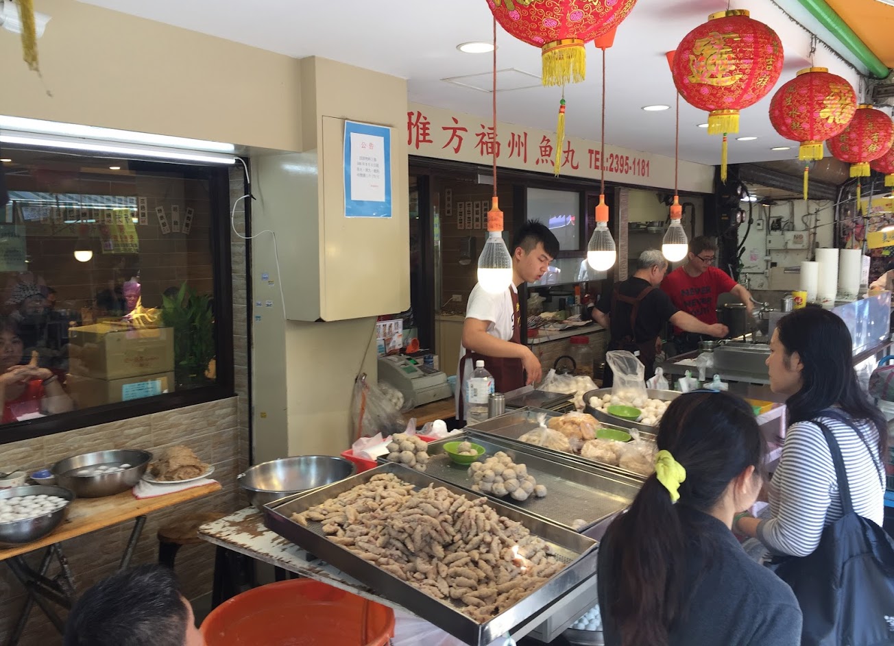 推薦點米粉炒、三色湯,這間的特色是福州魚丸的皮較軟Q,丸子餡汁多鮮美,與一般福州丸不一樣,十分值得一試,店外有秤斤賣的魚丸可買回家煮湯。