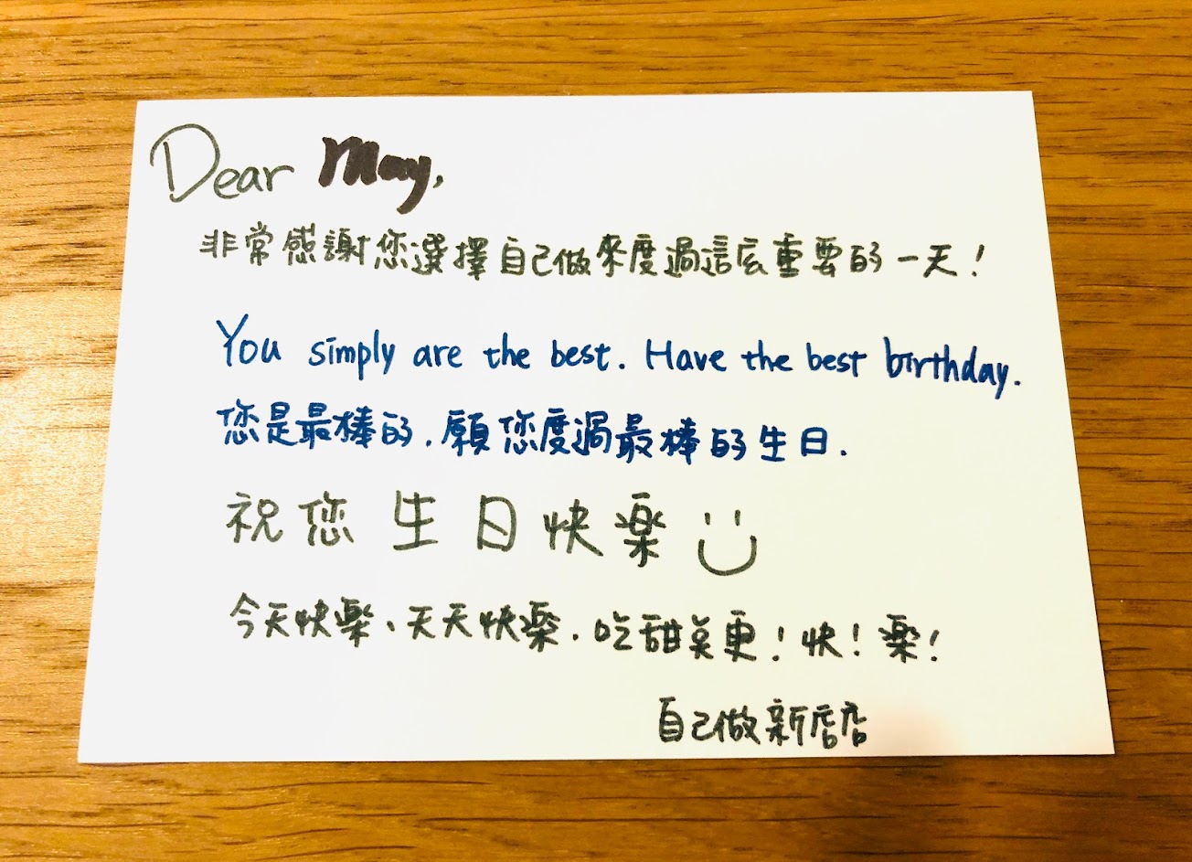 給了一張手寫生日卡片