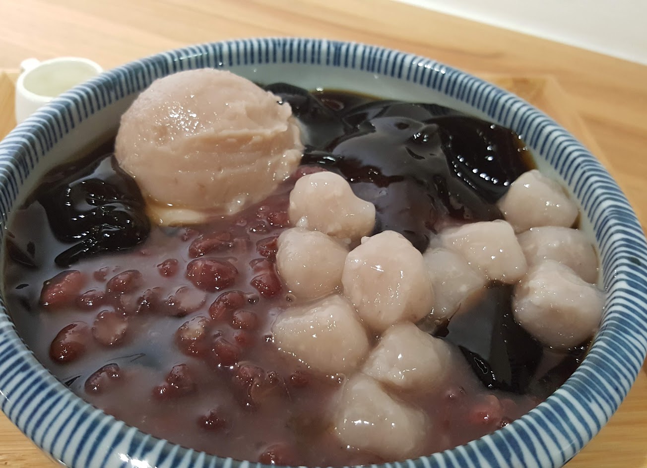 好吃 熱的溫度很剛好 完全不會燙口 每種配料都煮的相當用心 大愛珍珠 很Q~不會因為熱湯很太軟 紅豆很飽滿 芋圓和地瓜圓也很好吃呦