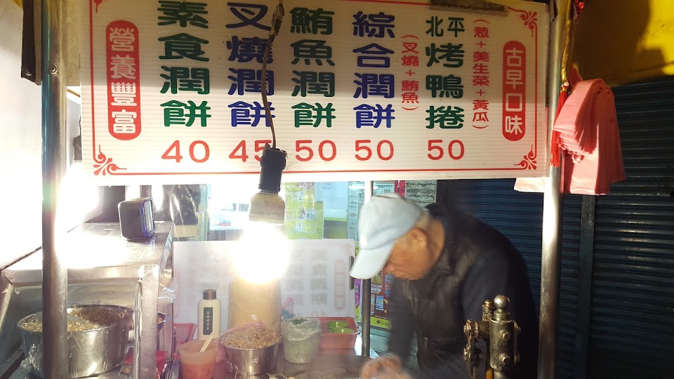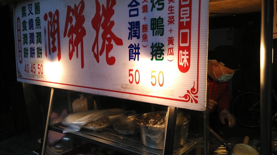 老伯伯賣的潤餅餅皮軟韌,給料豐富,賣完就收攤,要吃趁早