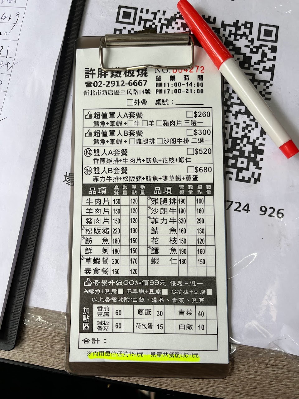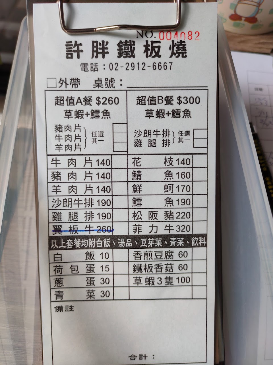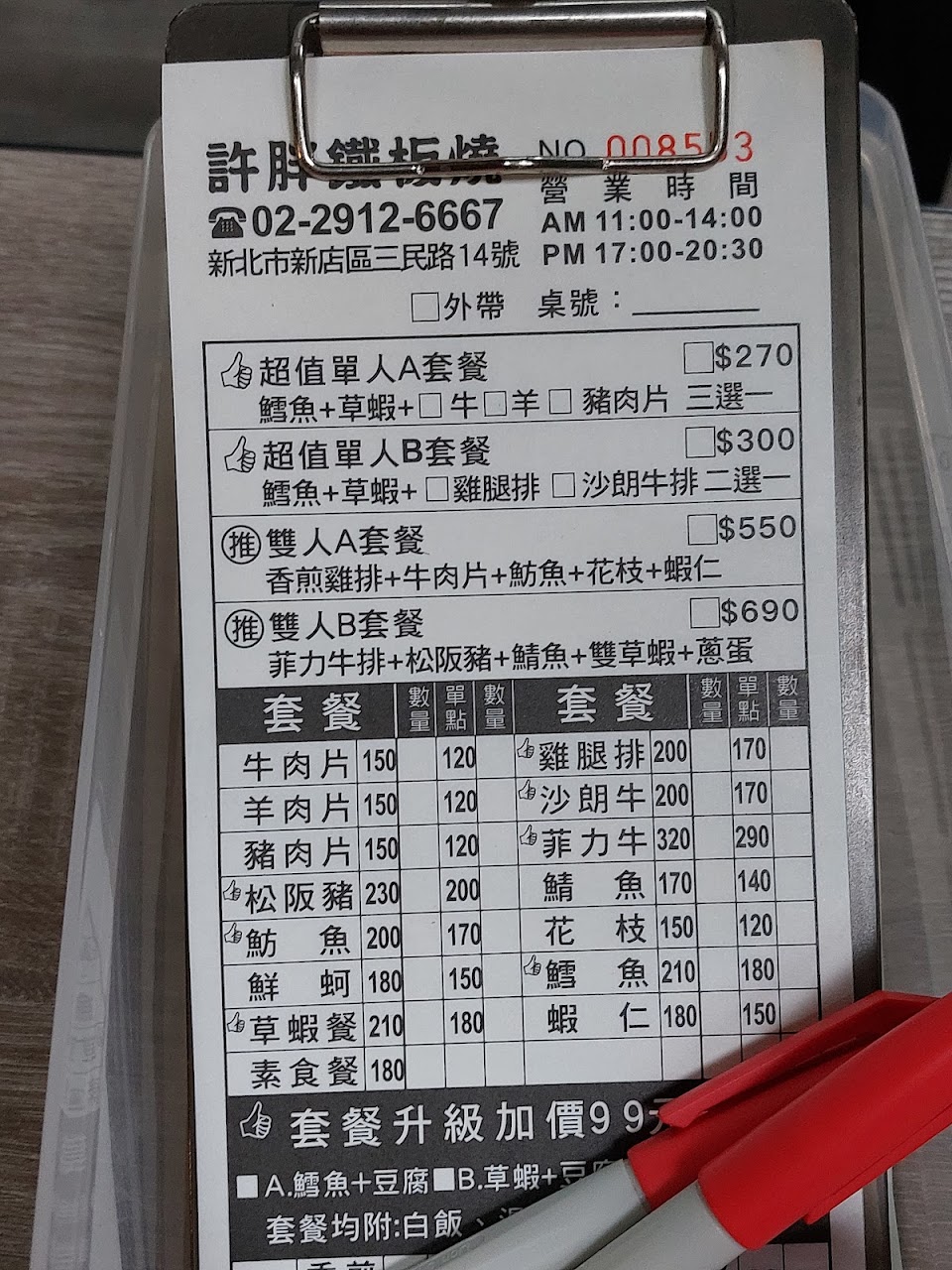 2024最新在地推薦餐廳的菜單_許胖鐵板燒的菜單、圖片