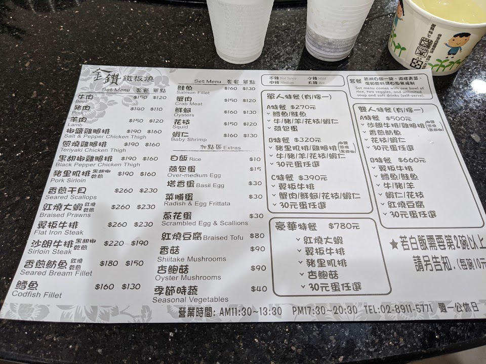 2024最新在地推薦餐廳的菜單_金鑽鐵板燒的菜單、圖片