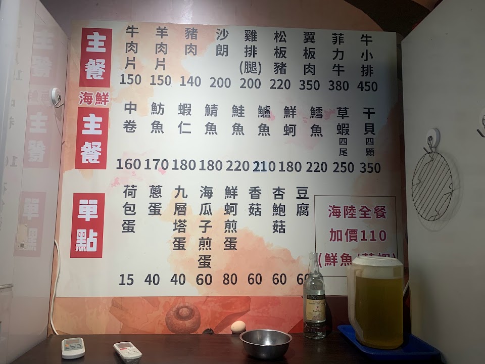 (套餐含白飯、湯、飲料機(以上為自助式)、青菜(豆芽、高麗菜))
