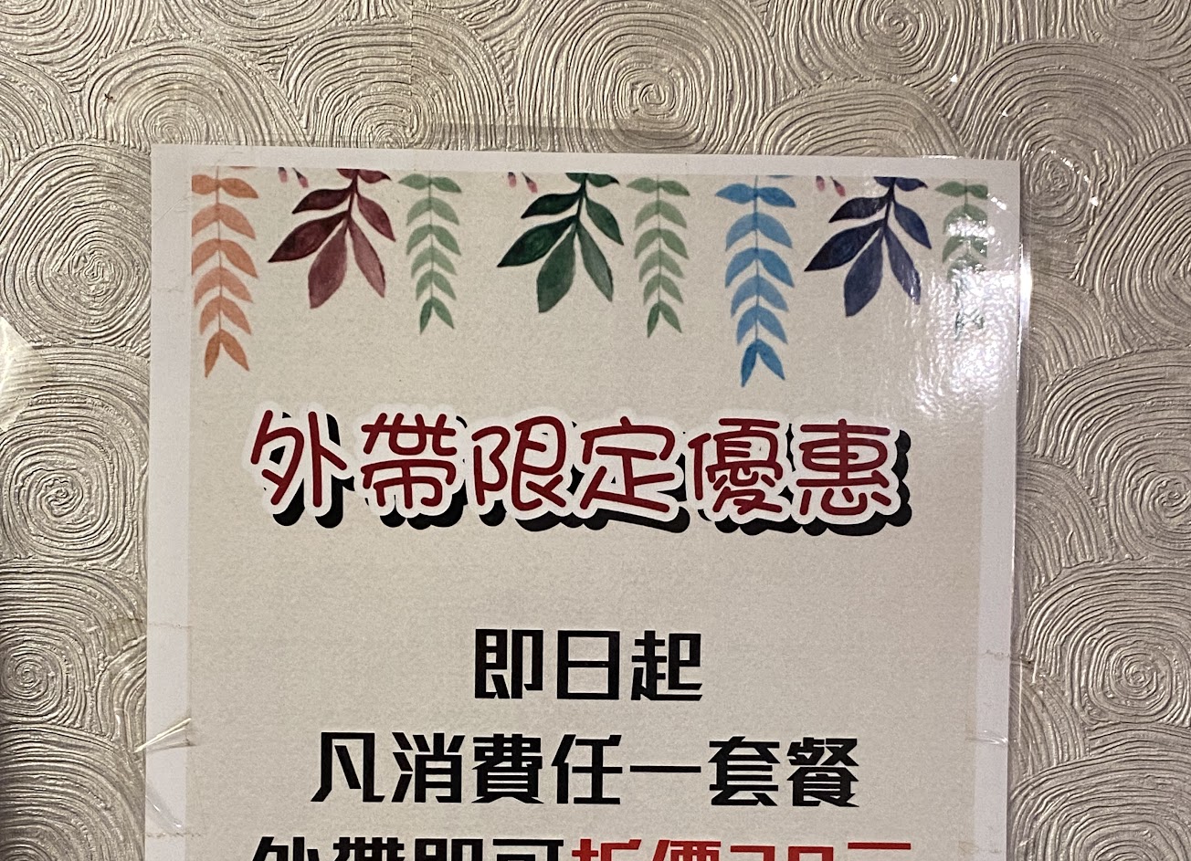疫情影響,可以先打電話自取外帶,還有餐點打折服務唷~老闆娘說目前未配合外送APP,但仍有外送服務(自己送,但忘了問多少可以外送,這部分需要的人可以自行電話詢問唷)