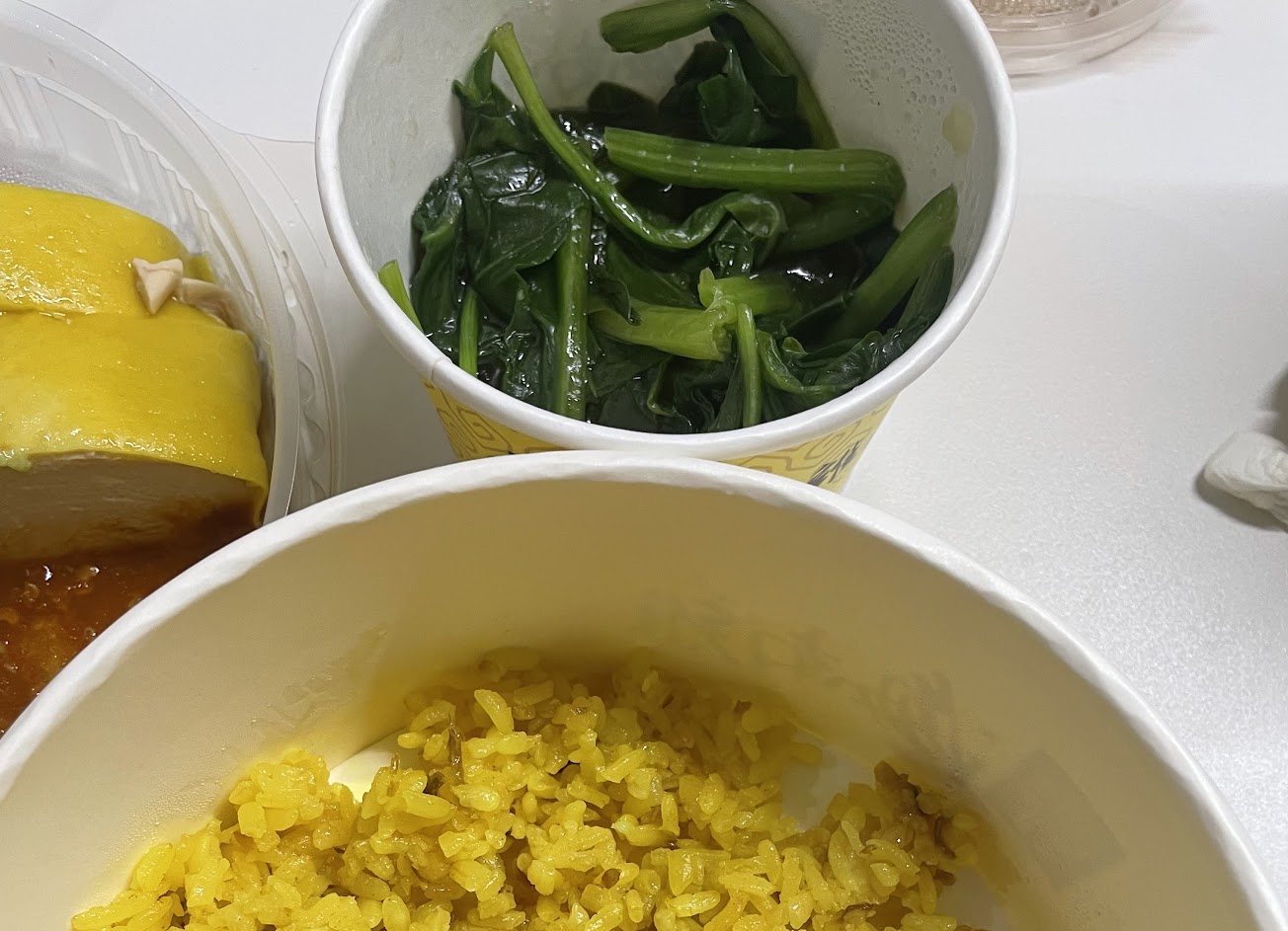 海南雞又分「海南雞飯」及「海南雞腿飯」海南雞飯是雞胸及腿腿肉混搭 但是我喜歡吃雞腿~所以選了雞腿飯~就可以只吃到雞腿肉 海南雞肉是選用35-40天以內的中期成雞 在店內採用新鮮溫體雞的烹飪方式製作的料理 是感覺簡單但背後的製作過程相當繁瑣的新馬料理 也才讓雞肉吃起來的口感鮮嫩 每份都會搭配三種醬料:酸辣醬/蔥薑醬/老抽 酸辣醬跟蔥薑醬是店家特製的 酸辣醬不酸辣但香氣四溢 非常開胃!老抽偏鹹 拌大口的飯一起吃好吃 其中我最喜歡蔥薑醬~不知道麼形容口味 但沾雞肉吃就是很好吃~搭配的米飯我選薑黃飯 但是感覺沒什麼味道 可以拌三種醬跟海南雞一起吃就很對味!