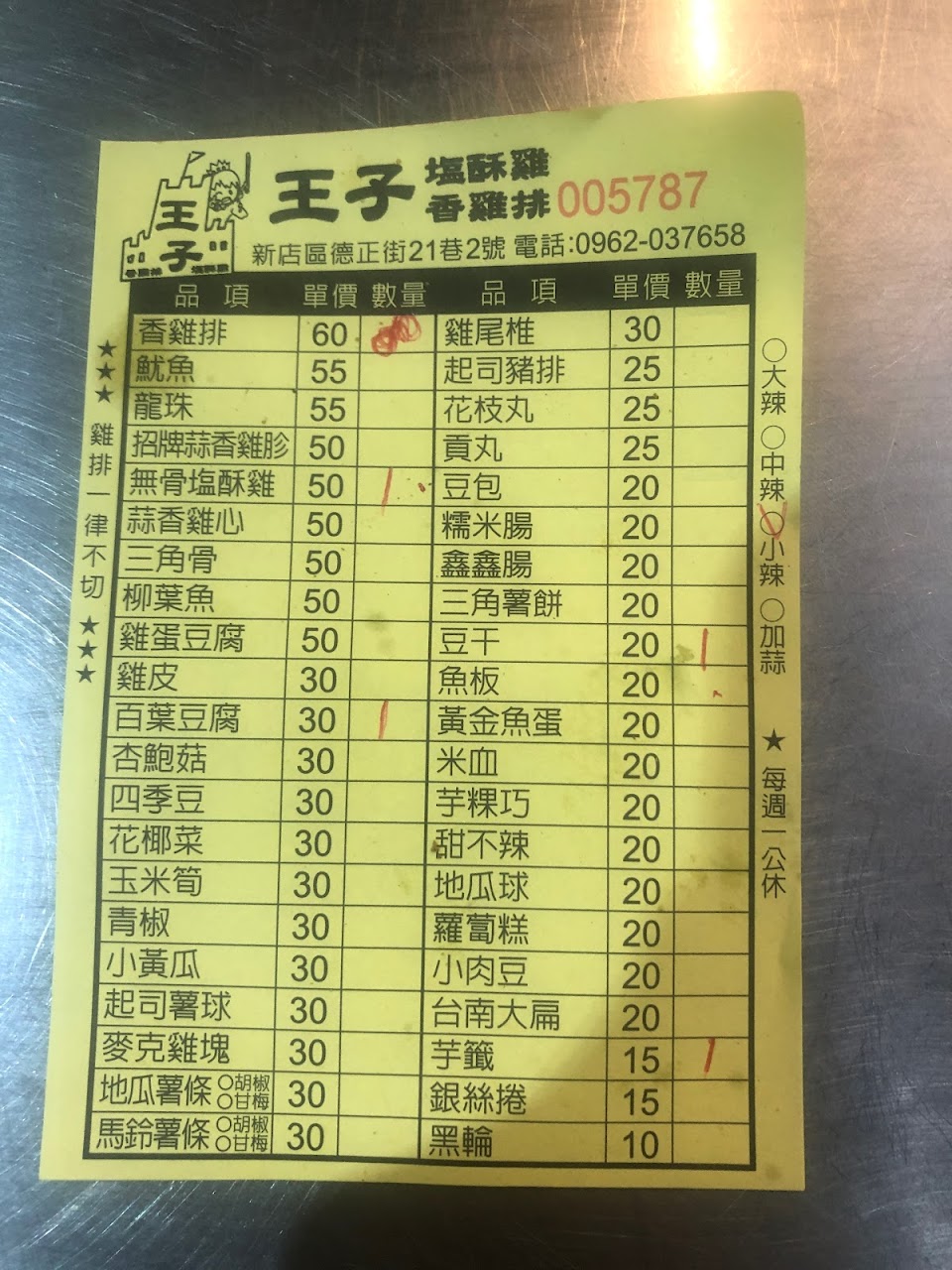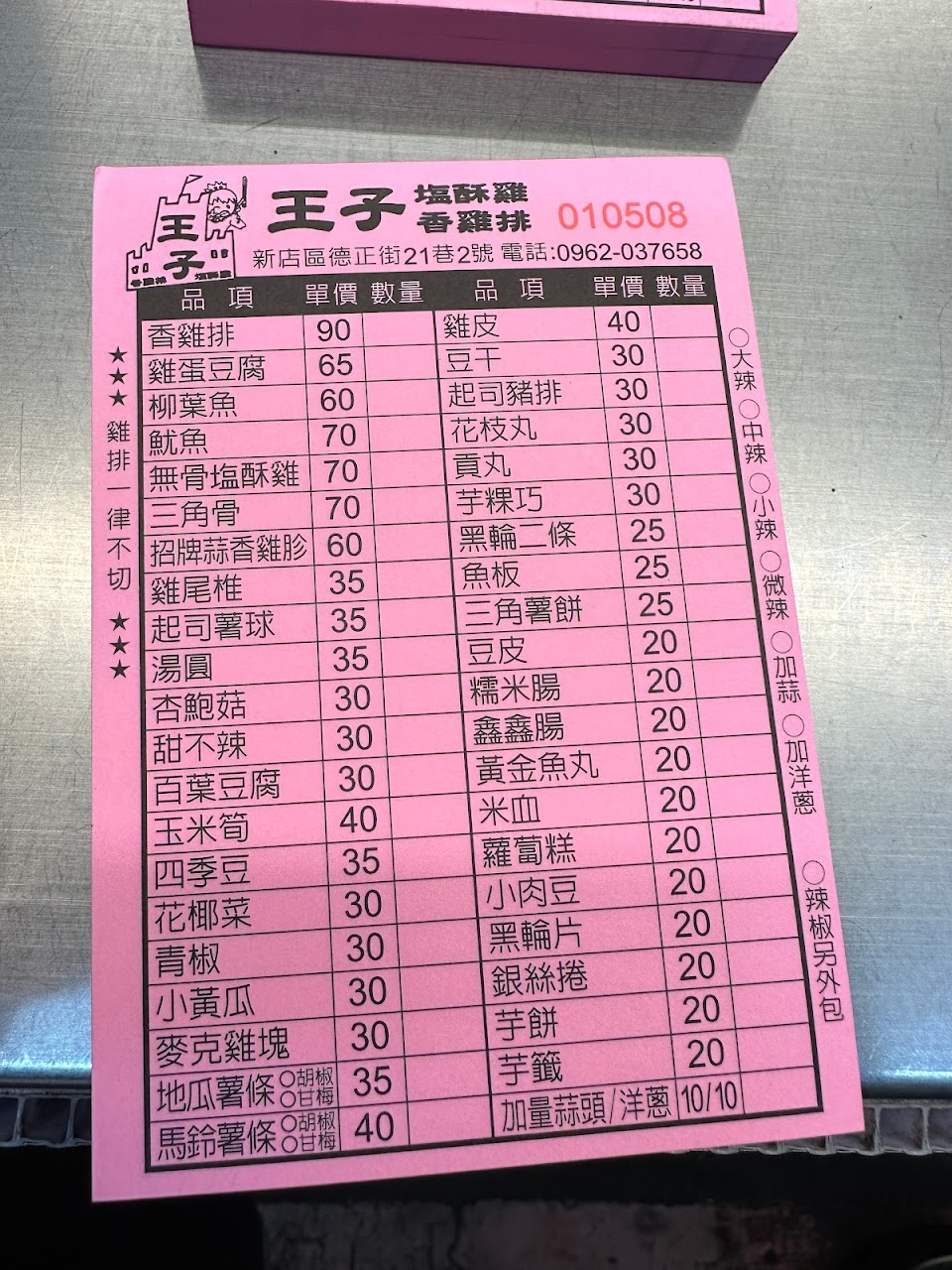 2024最新在地推薦餐廳的菜單_王子鹽酥雞香雞排的菜單、圖片