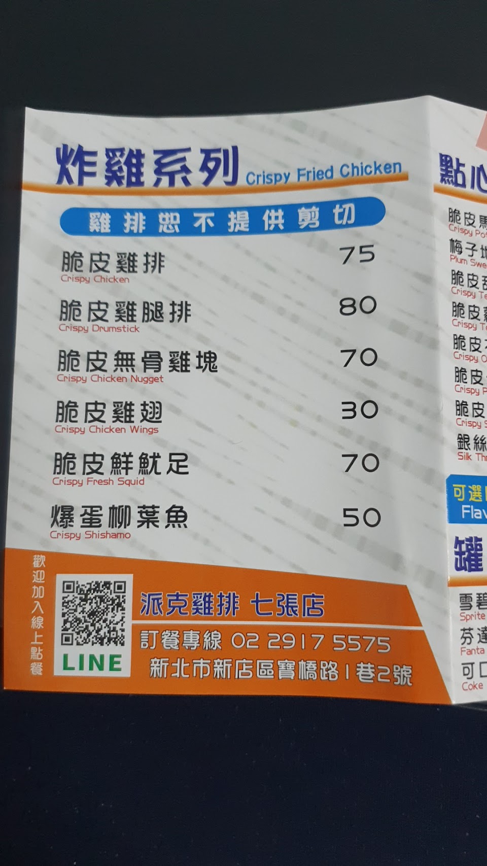 2024最新在地推薦餐廳的菜單_2派克脆皮雞排七張店的菜單、圖片
