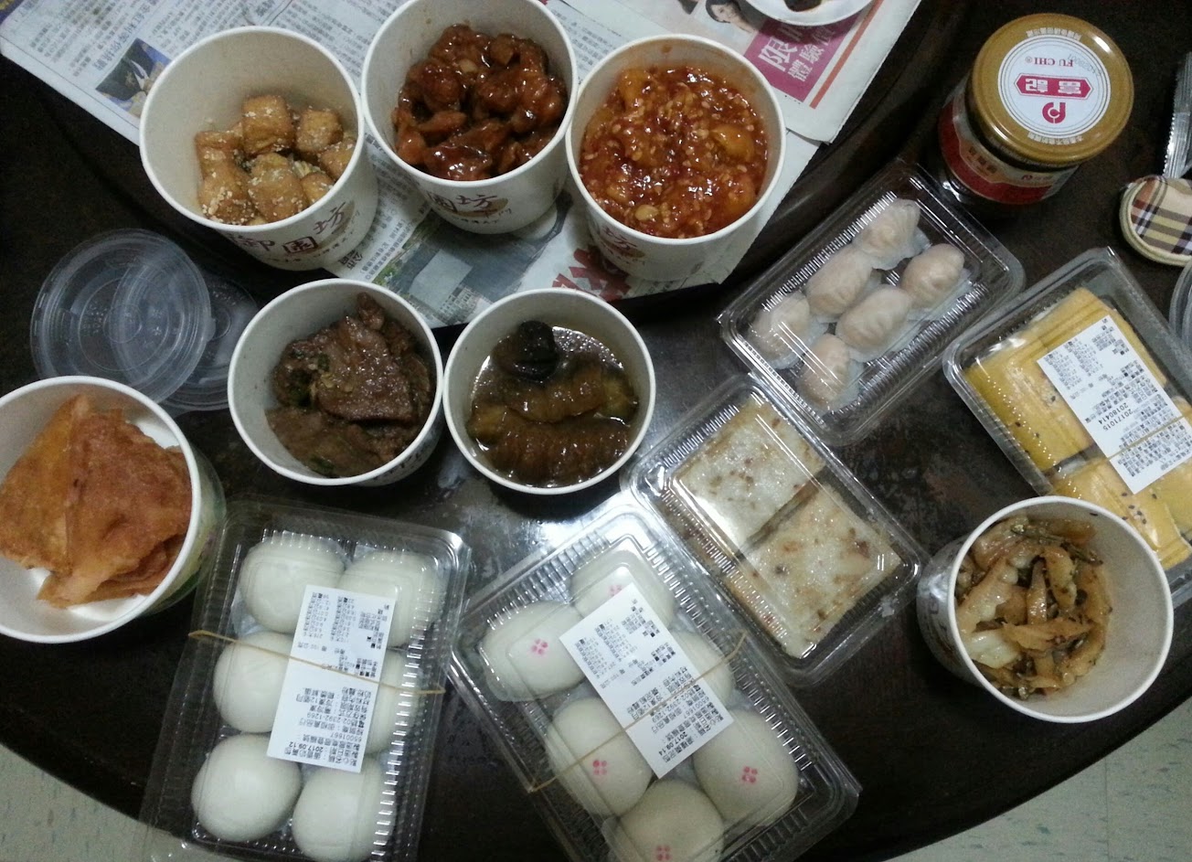 水餃真的都很好吃 故到現場購買 也買了一些熟食類 可是結帳時有嚇到 總金額2560 購買明細如下: 蘿蔔糕一盒4片,豆沙包6枚,奶黃包6枚 蝦餃一盒6枚,叉燒酥4枚 金沙炸豆腐?小碗1/3滿 糖醋魚片小碗7分滿,XX排骨?5片 炒苦瓜小碗7分滿 海參小碗1/2左右 雞肉? 月亮蝦餅大碗6片左右,豆瓣醬一罐 及圖片上沒有拍到的高麗菜蝦水餃350+香菜水餃250 扣掉水餃的話圖上這些東西約1960 感覺其實不便宜 但因為網上資訊都說經濟實惠 大部分的資訊也都是水餃類 所以裝菜時沒有想太多 知道是稱重計價也沒有拿湯汁 沒有想到還是被價格吃驚到 建議購買前先可以詢價