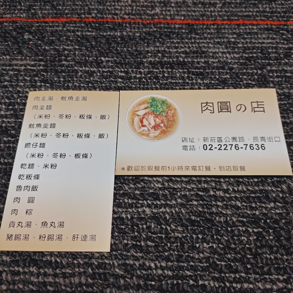 後來改成”肉圓の店”肉圓,也有印製名片,印製雙面,背面還有販賣品項,不知道跟之前店主是否一樣?!?就位在公園路一處小轉角處,只都買過外帶,肉圓低溫油炸卻不油膩,這滿可取的,醬料有食友說不喜歡且無味,看個人吧,我還滿喜歡這泥黃醬料,而不是只帶甜辣口味,或再加點醬膏的,肉圓大小一般,皮偏軟帶Q厚度也一般,內餡沒特別重的口味,肉塊帶筍的清脆口感,主要再和著醬料覺得滿不錯的,重點是整體不帶油膩感,而且一顆40也不貴,單以肉圓評論四顆星,可以值得試試,個人還會再續買的店家,謝謝招待,2022.09