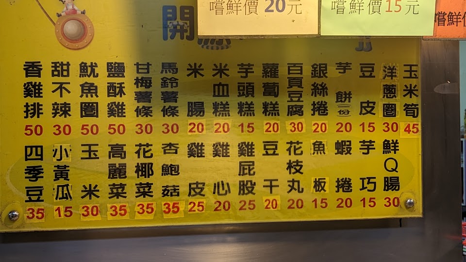 加上烤肉醬的炸物,附上最新的價錢表111.8.7