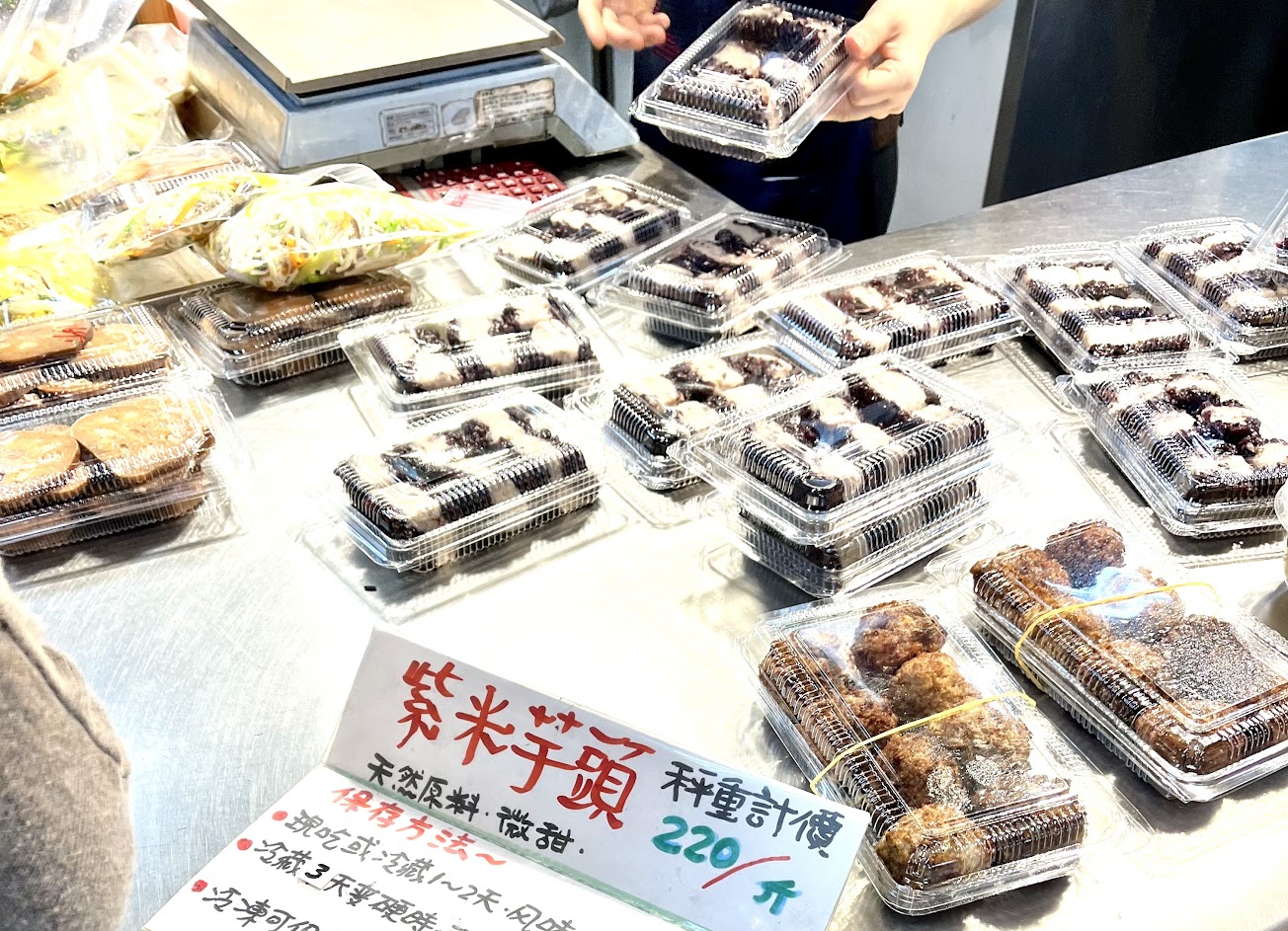 水源市場一樓賣港式點心、滷味,東西看起來很乾淨,招牌紫米芋頭十分搶手,價格$220/斤,微微糖,紫米口感佳,芋頭軟糯香氣濃,配純茶很享受。