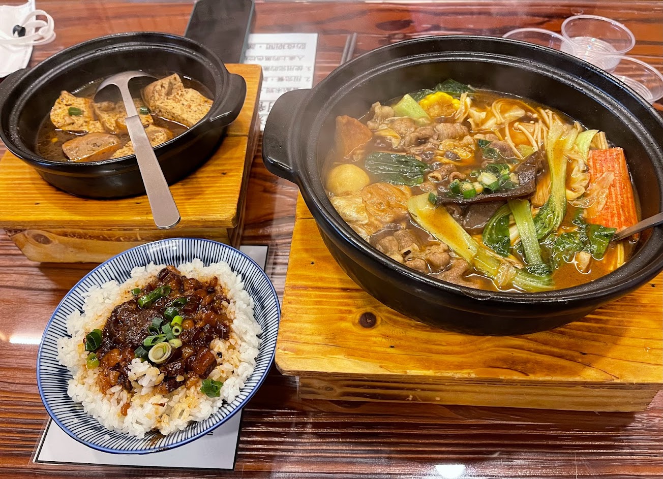 在熱鬧的幸福路上, 離佳瑪很近,就在幸福路郵局的對面。 價位中上 兩個大人,兩個豆腐鴨血煲 兩碗麻辣魯肉飯 這樣就要400多