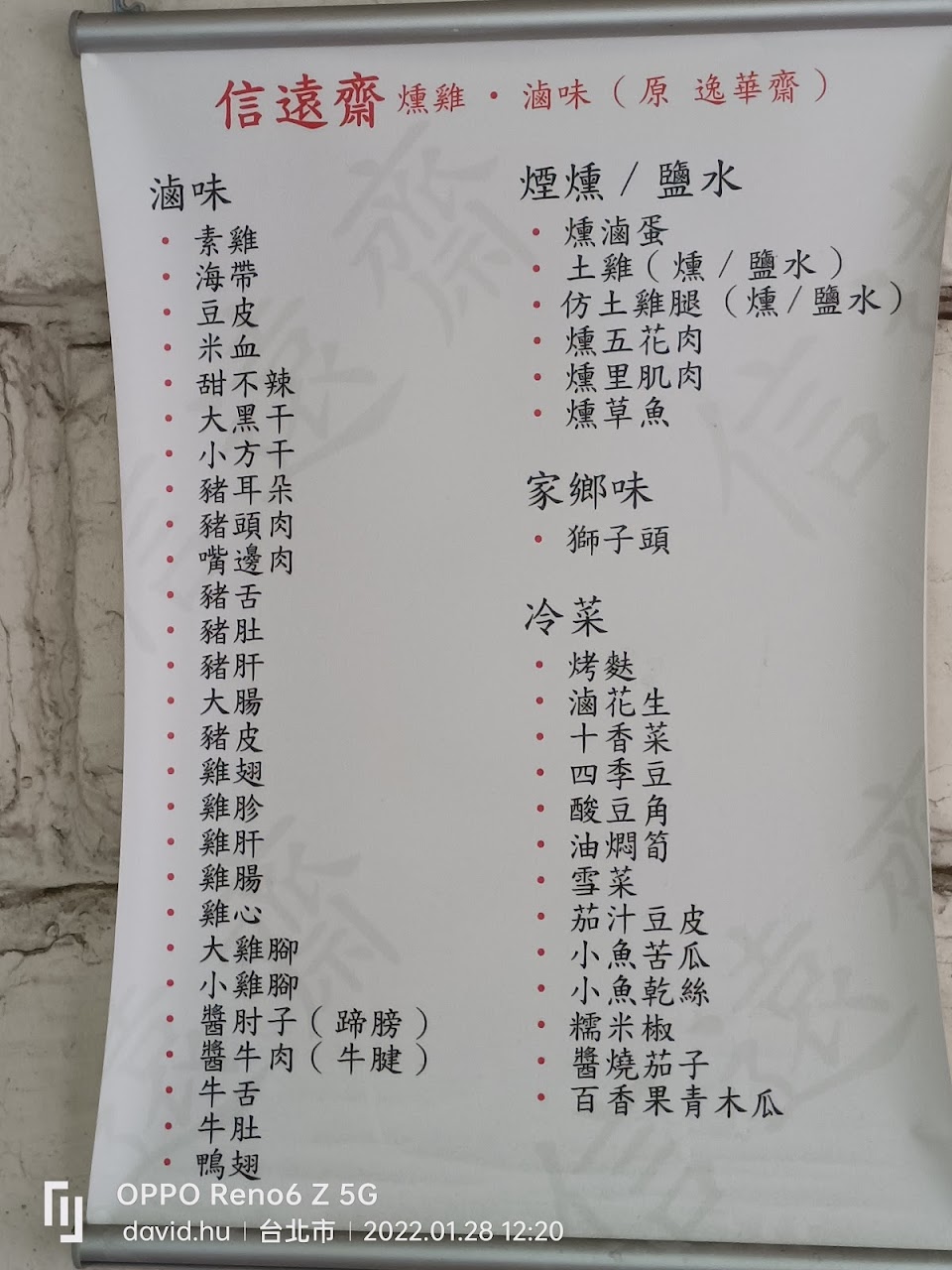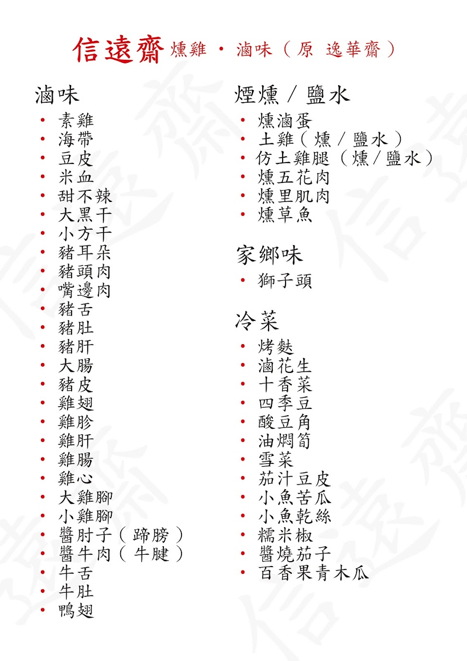 2024最新在地推薦餐廳的菜單_信遠齋 燻雞·滷味(原 逸華齋)的菜單、圖片