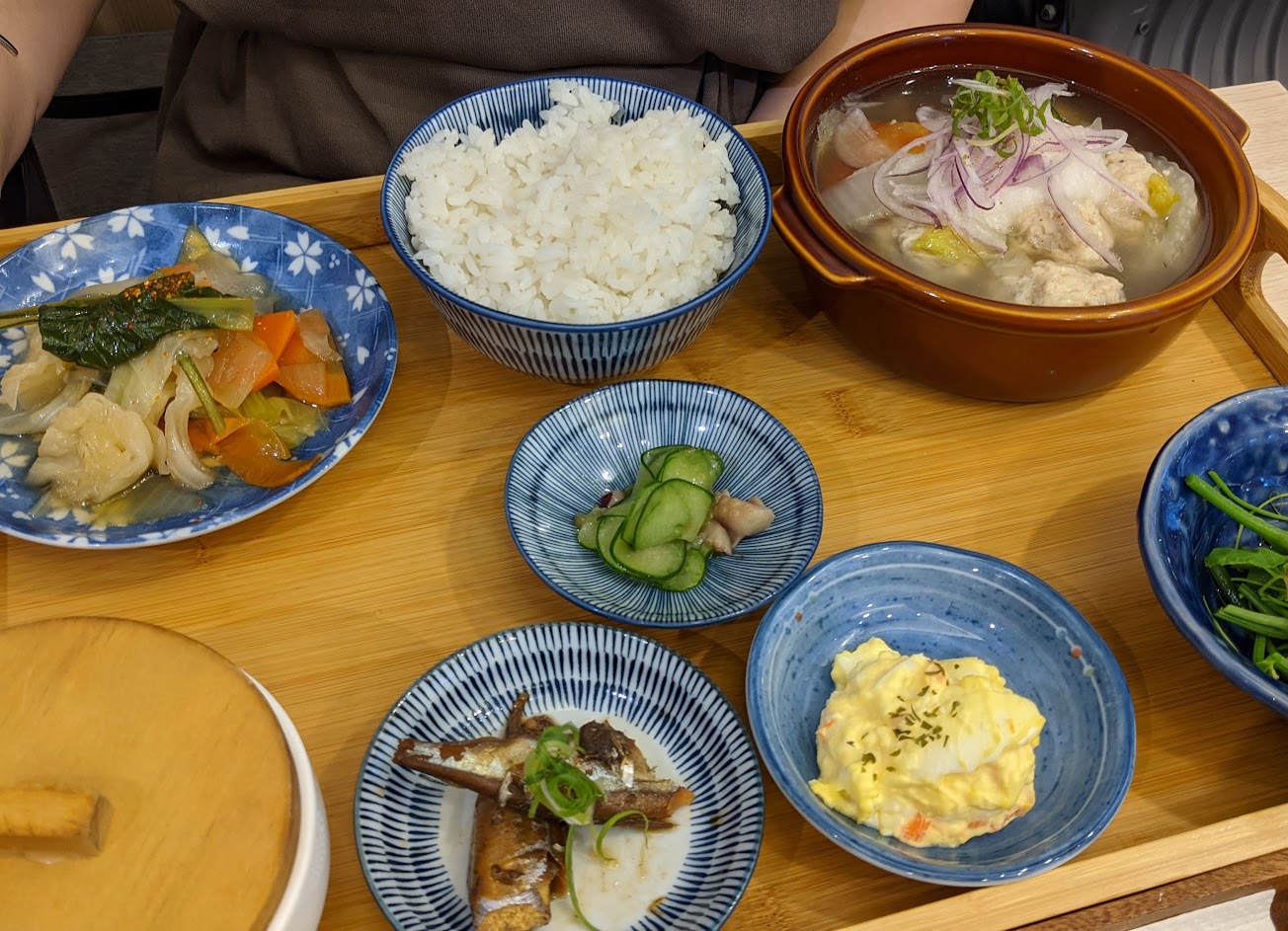 五菜一汁的套餐飽足感十足。每道小菜也都水準之上:涼拌龍鬚菜和芥末章魚小黃瓜清爽開胃。今天點了紫蘇苦瓜雞,湯汁入味濃郁,雞肉燉煮的軟嫩。吃完的我好快樂。