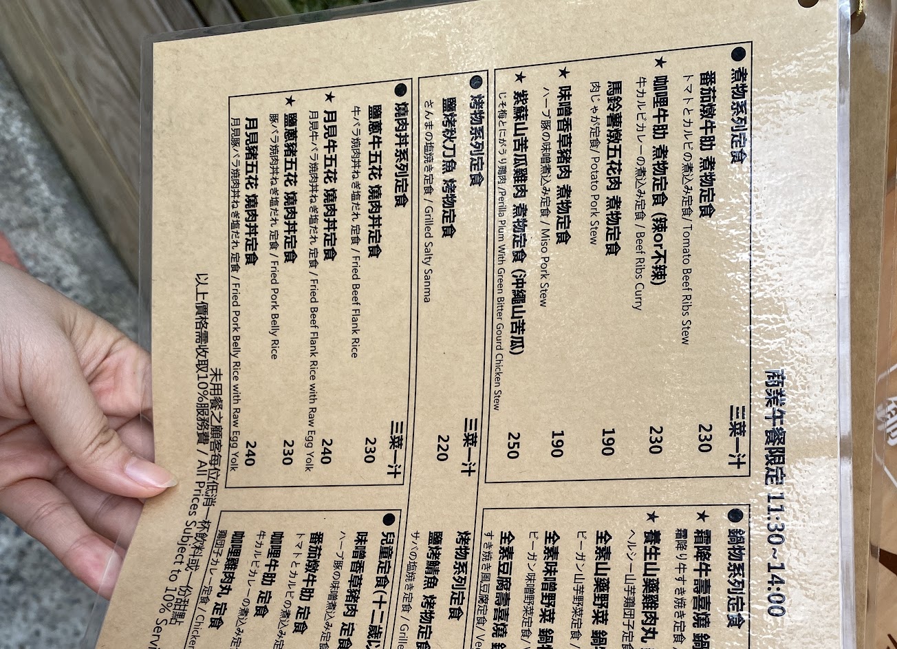 ⒋主打日式定食(煮物、鍋物…),口味清清淡淡,消費不低 ,需另再加一成小費。