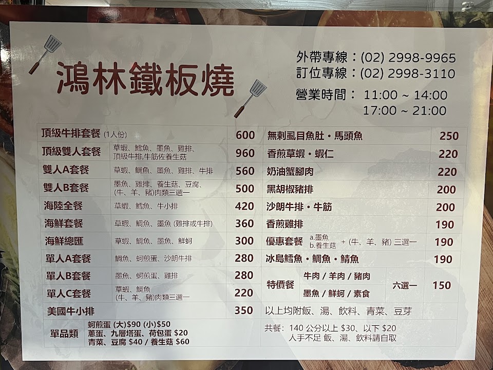 2024最新在地推薦餐廳的菜單_鴻林鐵板燒的菜單、圖片