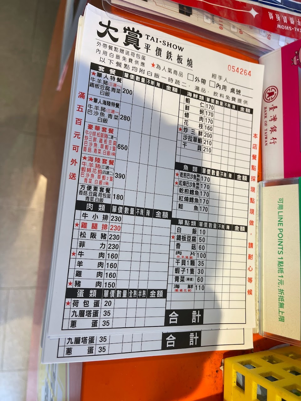2024最新在地推薦餐廳的菜單_大賞平價鉄板燒新莊中榮店的菜單、圖片