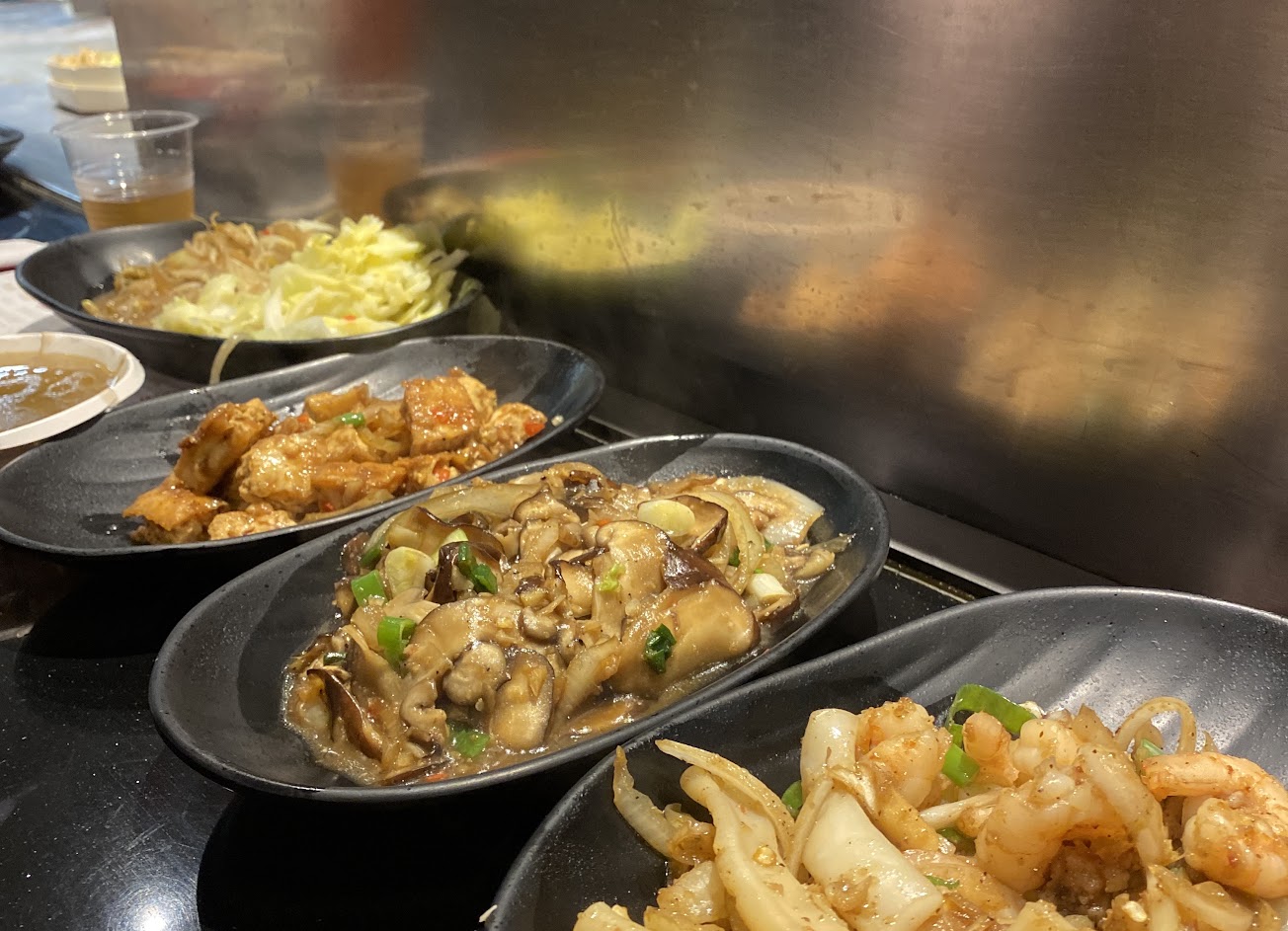 跟朋友一起分$390的雙人套餐,有牛豬羊肉片(三則一),跟海鮮快炒(四選一)另外有魚跟蝦子兩隻。 點的時候沒預期到,花枝跟蚵仔會合在一起做快炒。調味不重口,建議加辣。 五星有送鐵板豆腐,是用板豆腐炒的,豆味重。沒能吸附醬汁有點可惜。 但整體用餐氣氛還不錯 餐點:4 服務:5 氣氛:5