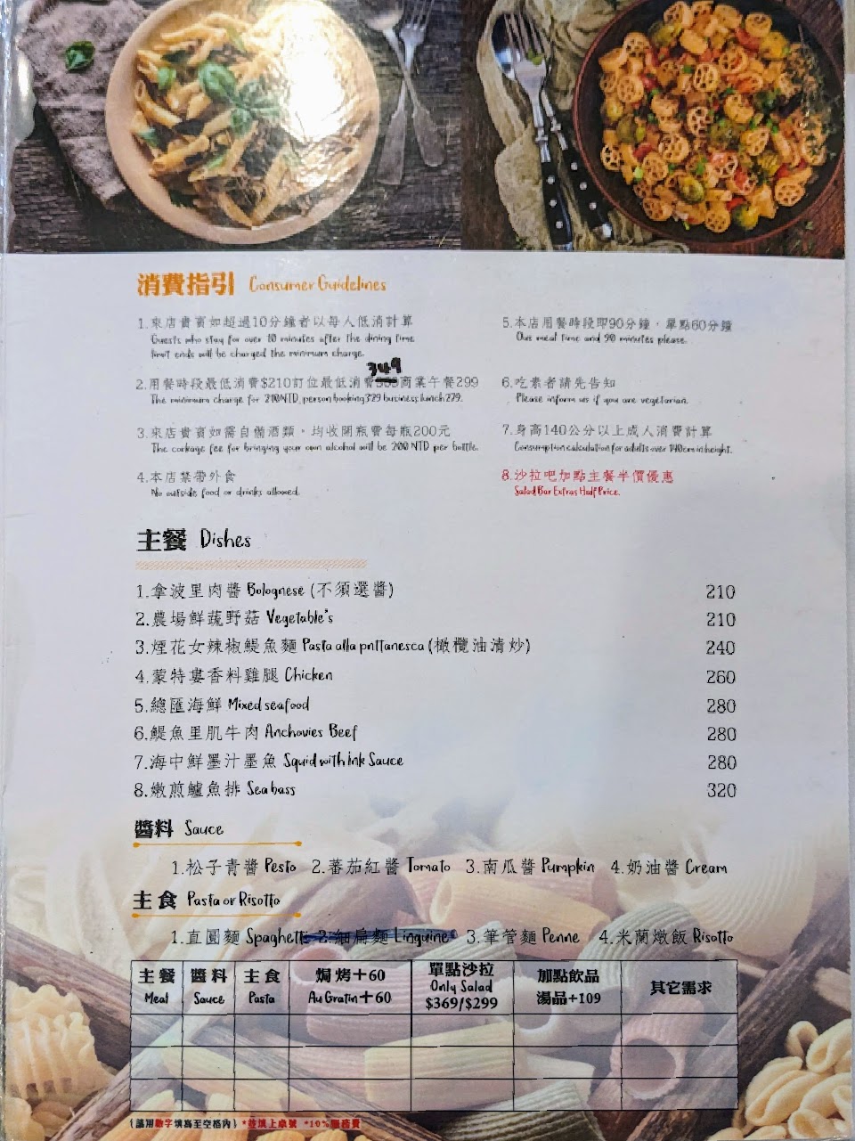 如果主食變小份+沙拉弄成套餐含服務費在400以下,應該競爭力可以提高很多