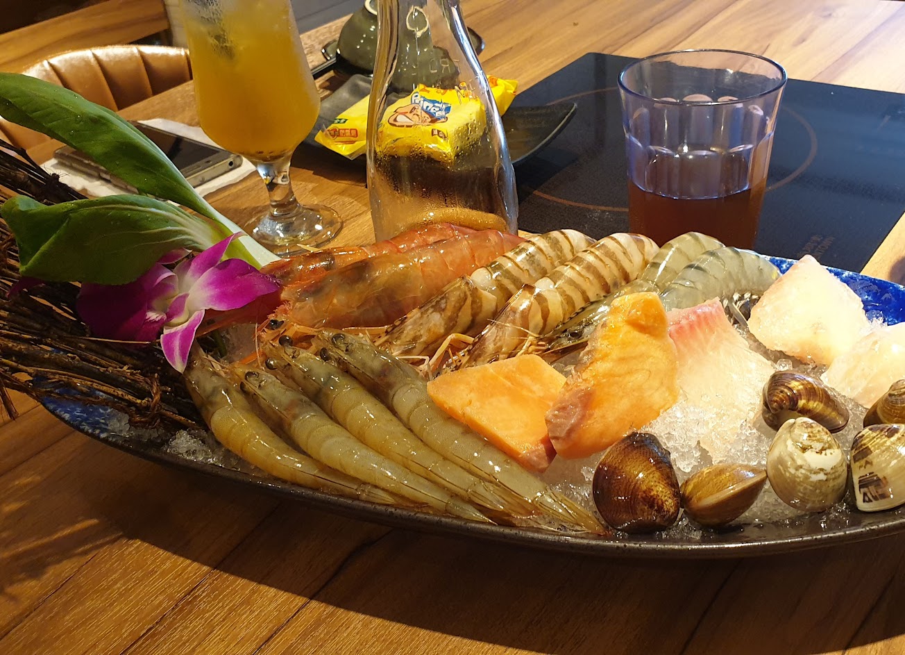 食材下鍋前先喝一碗滾滾雞湯好讚; 牛肉跟海鮮很新鮮; 芒果冰沙很綿,超好喝; 還有生啤唷~ 座位超大,椅子很舒適!