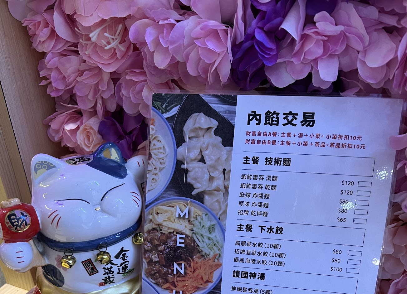 水餃肉多,雲吞鮮甜,麻辣炸醬麵香辣 價格合理 餐點:5 服務:5 氣氛:5