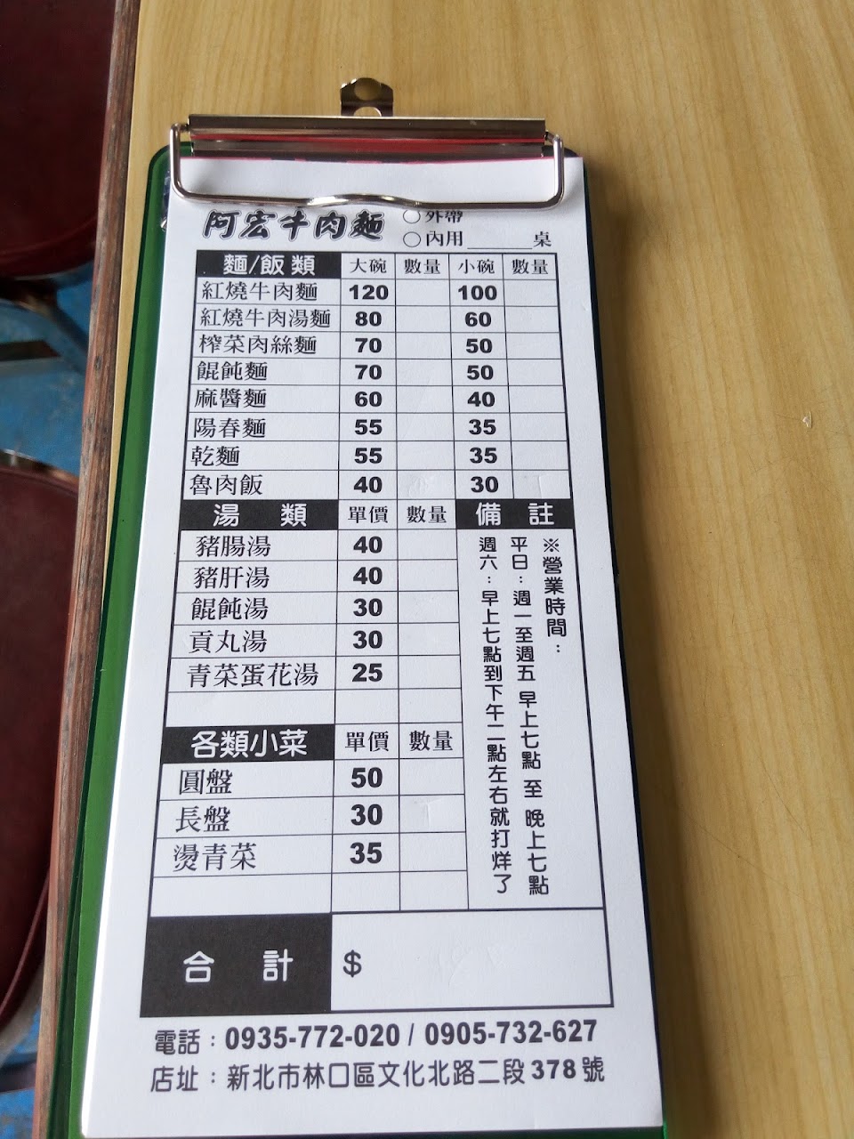 2024最新在地推薦餐廳的菜單_阿宏牛肉麵的菜單、圖片