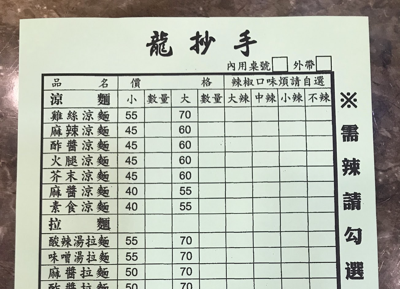 剛剛去消費,站在爐火旁一陣子,面前有4至5個員工,手是一直在動,但嘴巴也沒閒著一直在聊天,我手上拿著綠色的菜單在胸前位置,都沒有人想接單,後來終於有人接單了,真是”感謝”有人願意理我,我點了味噌湯加蛋,竟然在我面前從爐火台上方拿下一包已經打包好却不知擺了多久的湯,接著什麼都沒跟我說明,就說我的湯好了。嗯,龍炒手對待顧客的態度真的是” 親切又禮貌”真是讓人不敢恭維,除了吃涼麵還可以修身養性提升EQ,這種生意好就把顧客當空氣的店家,看看還有多少人願意光顧了。