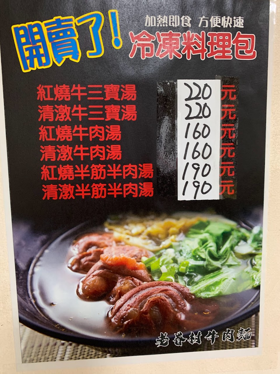 牛肉麵加湯,酌收$20