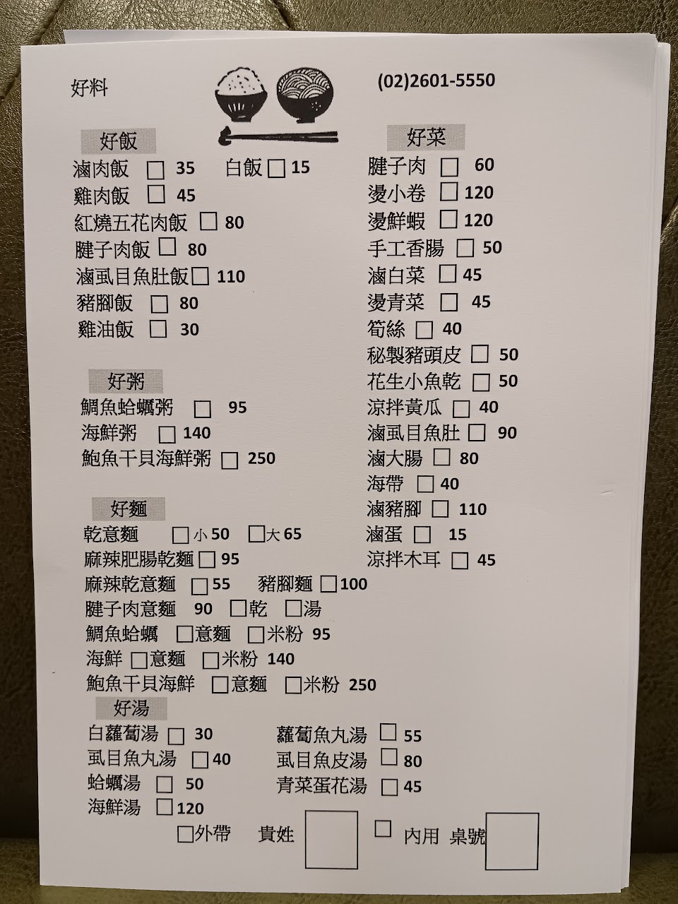 連兩次都是外帶回家吃的,而菜單是拍放在結帳檯上面的單子。