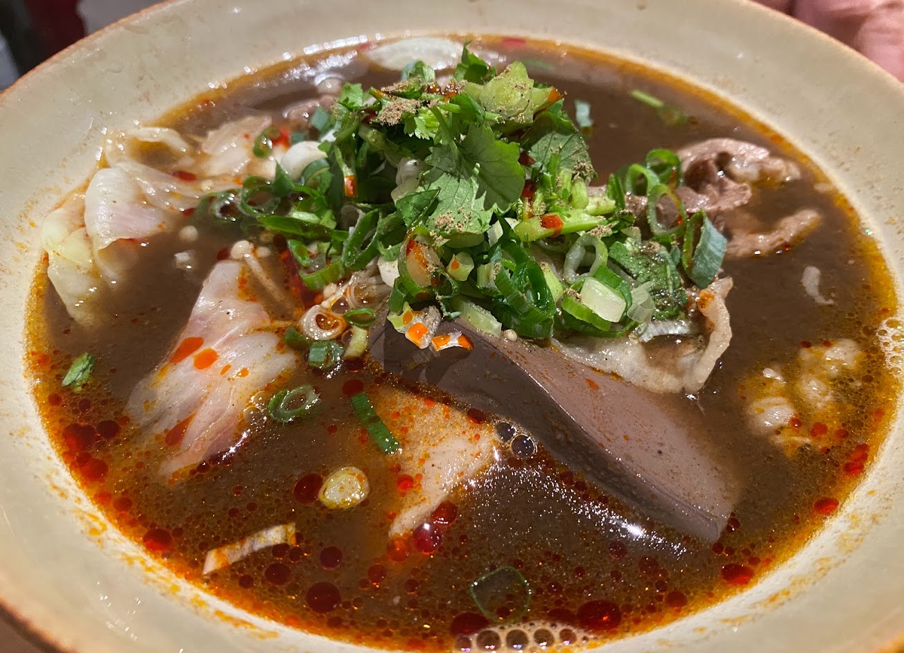 口味和份量對我來說剛剛好。本來不喜歡吃肉,但洋洋灑灑的蔥花香菜下牛肉片非常地好吃,寬麵軟硬適中、鴨血嫩脆、豆腐溫潤,非常推薦!