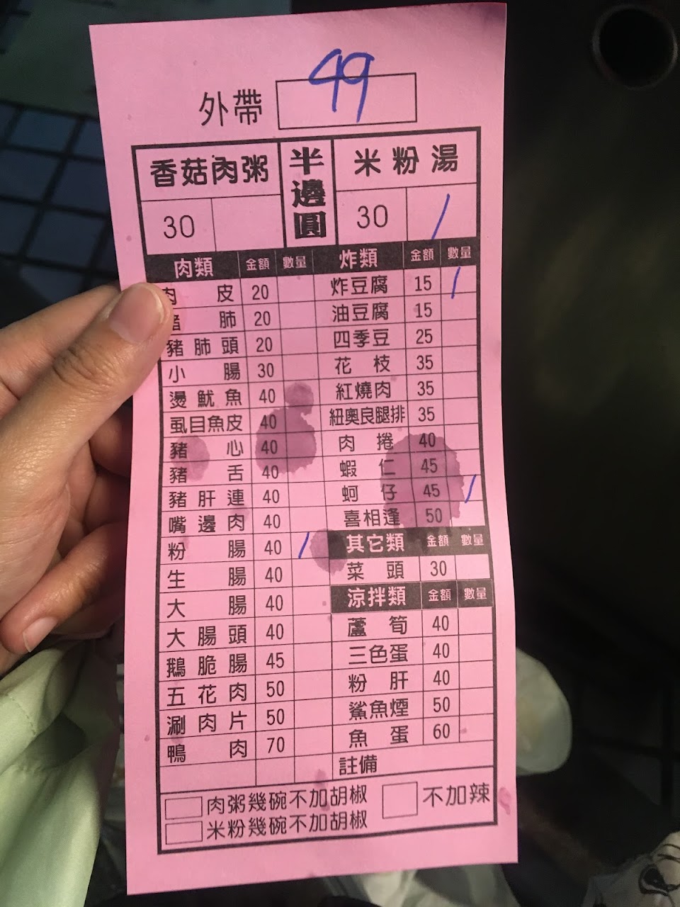 外帶是給號排隊,點小菜的話,單子一直被壓下去,因為只點粥、米粉湯的會先做,眼看後到者一個、一個走了,想吃好一點的人要有等上半小時的準備。