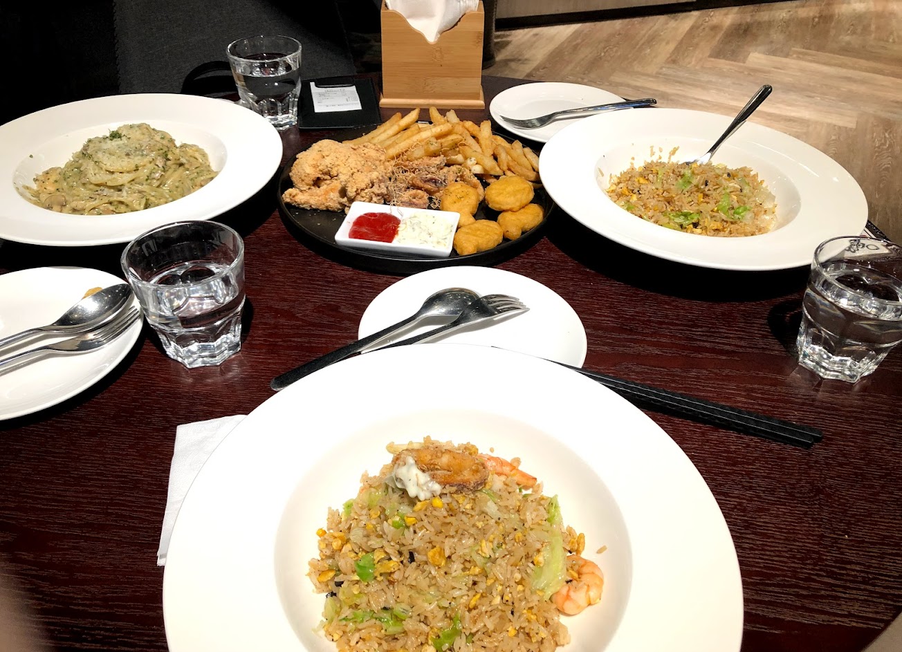 披薩味道不錯,炒飯炒的夠鬆,香氣也足,有飯店等級的水準,雞肉蒜味義大利麵,雞肉料理的夠嫩,可惜用蒜泥下去拌炒,蒜被炒到變苦,用蒜片還是比較好。