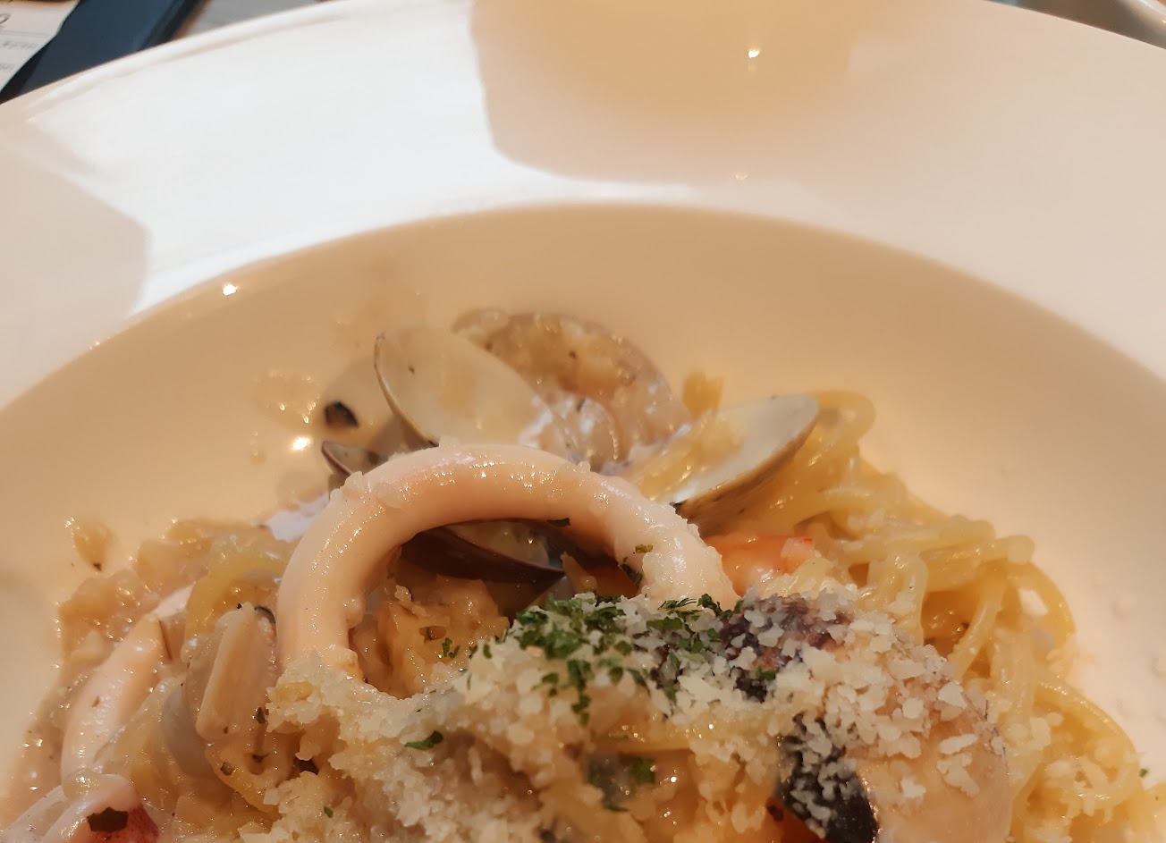 炸鮮蚵都沒有腥味,蝦子吃起來Q彈煮的時間剛好不會過老,義大利麵超級香很濃郁