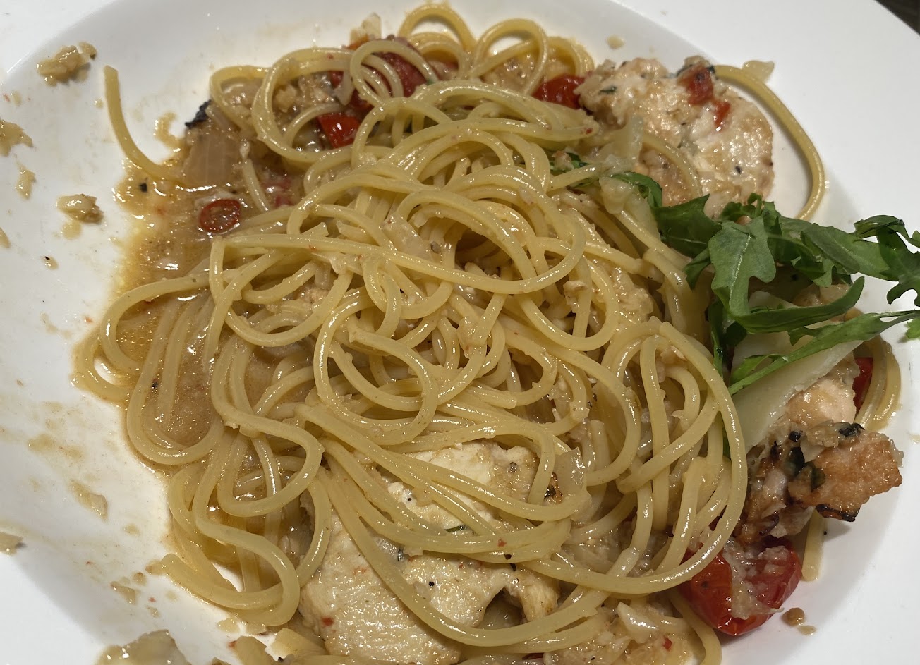 辣雞義大利麵>有辣、應該是中辣吧!我可接受…肉蠻嫩的、量適中