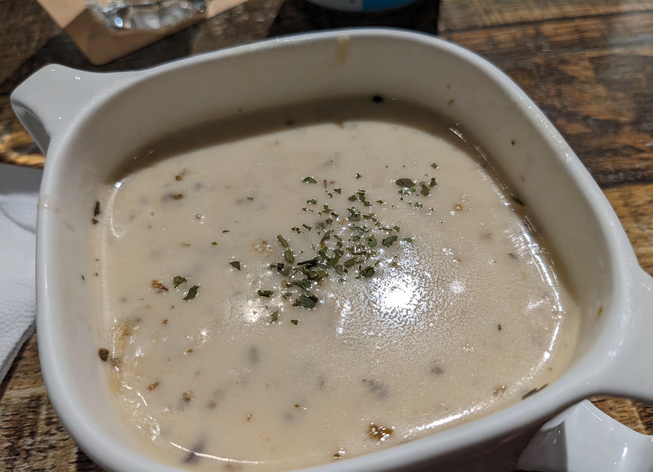 價位不便宜,但口味還好,濃湯濃過頭是一個敗筆,服務人員心情很差,回答問題極為冷漠也沒講到重點,導致我們也不開心,CP值低,不會再去。
