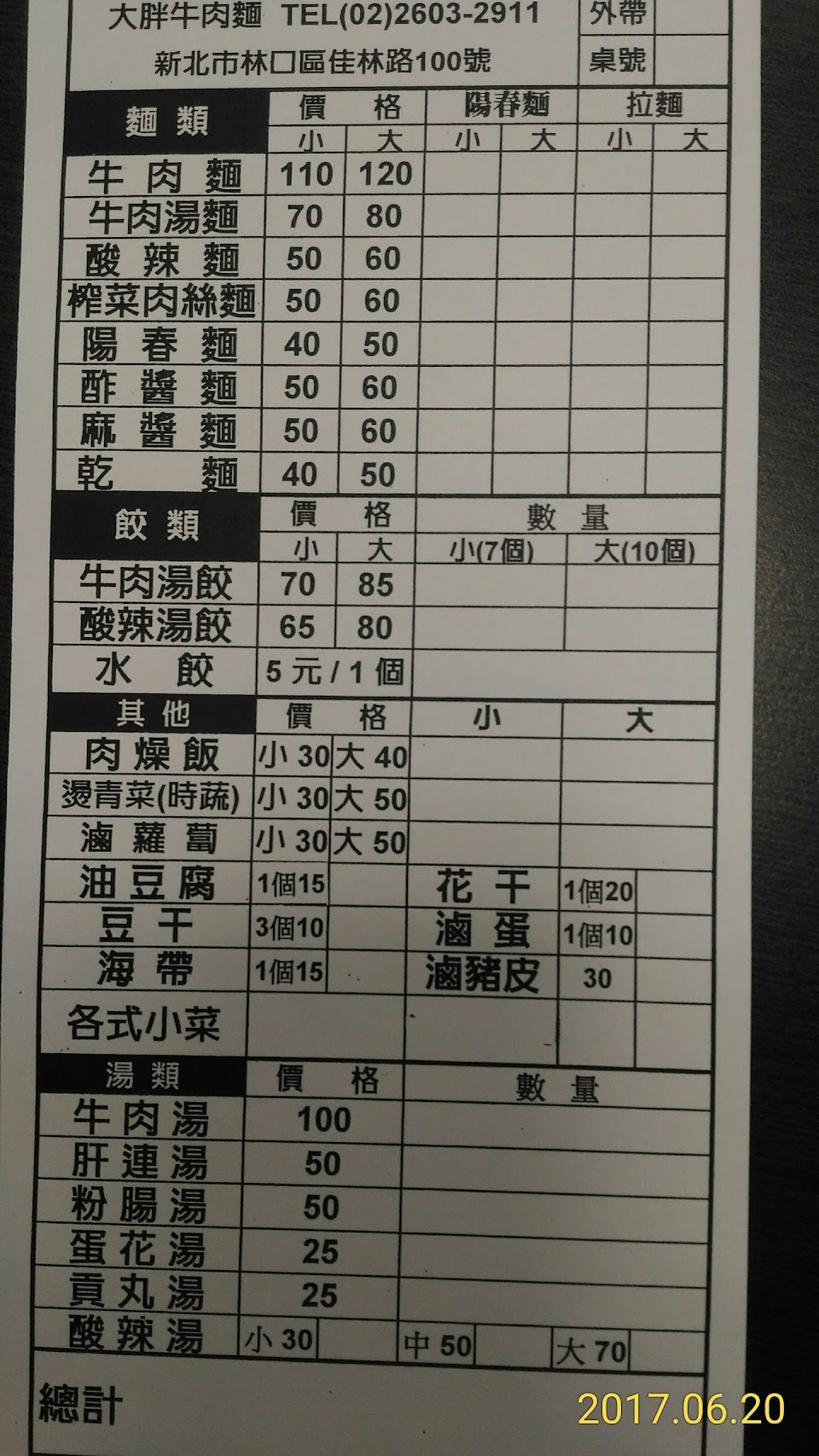 2024最新在地推薦餐廳的菜單_正宗大胖牛肉麵的菜單、圖片
