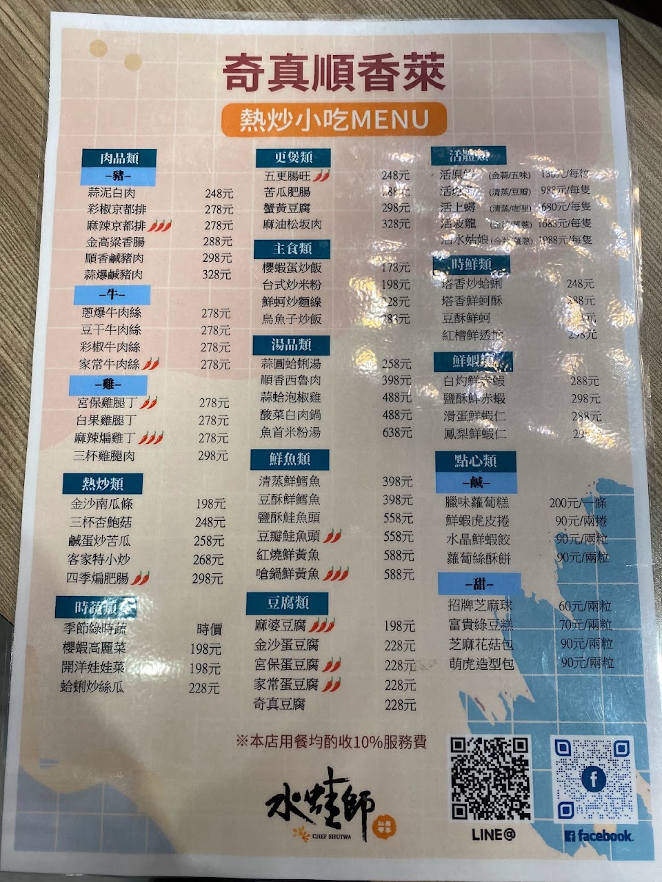 整家店的風格不知道該怎麼定位 男生的服務不怎樣收10%服務費就算了 食物還很難吃 蛤仔湯的蛤仔臭掉 也只有最基本的炒飯跟炒米粉還行 林口人是沒吃過好吃的食物是不是 還4顆星