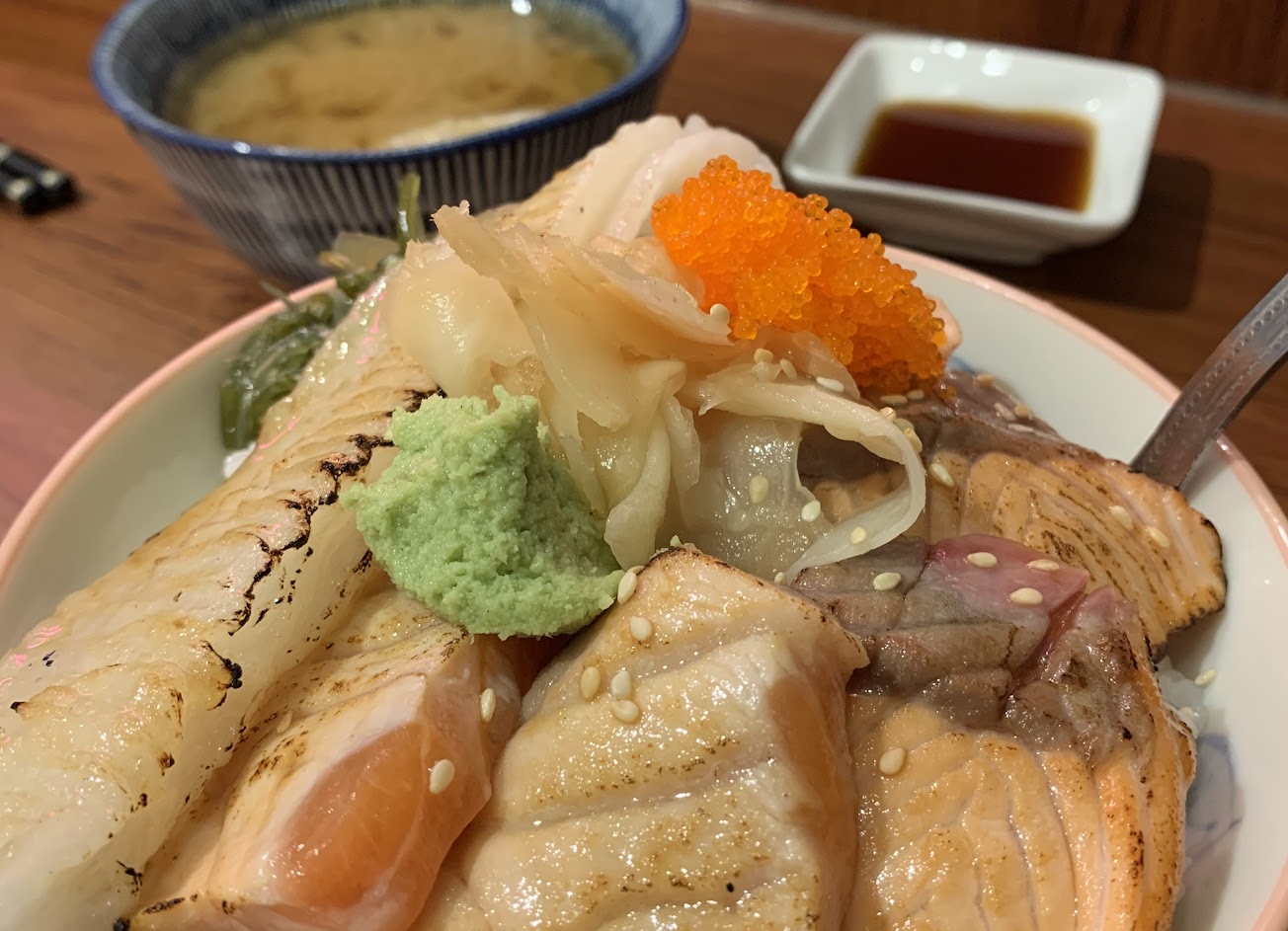 海鮮非常新鮮,用料扎實,生魚片切得又大又厚,山葵是現磨,可以提出魚的鮮味,店家醬油是用釀造醬油味道偏甜,鮭魚卵先甜會爆汁超級好吃,隨意丼可以自己設定價位,那天有鮑魚、白子(這個超推,像棉花糖一樣的口感,帶著滿滿的鮮味)、天使蝦、稻燒鰹魚、紅甘只要600簡直超划算。
