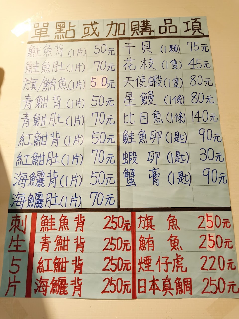 2.點過其他品項,如:鮭魚比目魚(CP值較低)。