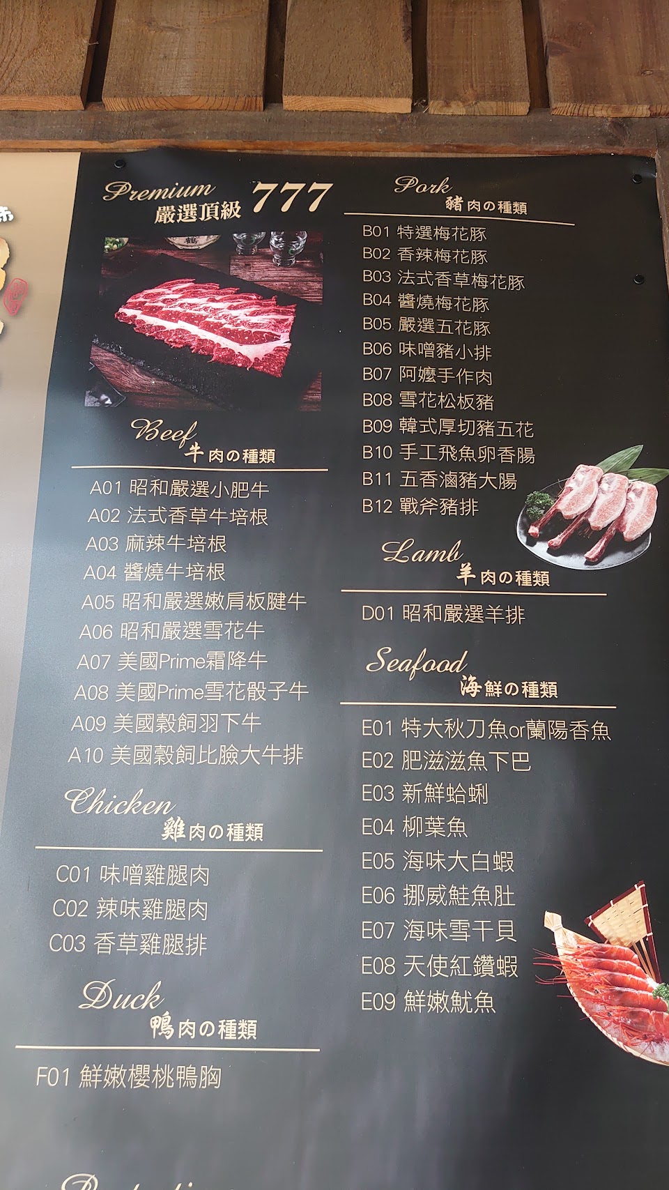 店內裝修是日式木造老房子的氛圍,點777的方案會是555的升級版,建議先點777的品項。份量上菜時都給得很多,火鍋湯頭很清,但蛤蜊給很多二十幾顆丟下去湯頭就剛剛好。冰淇淋和飲料吧稍為簡單,冰淇淋是明治的也不錯吃,罐裝汽水不用加價但是啤酒是要的。只有燒烤類的沾醬沒有火鍋的,沾醬水水淡淡的,調味料則非常多樣,孜然、檸檬鹽、鹽岩、白胡椒黑胡椒都有。服務還不錯。肉類品質算可以接受。