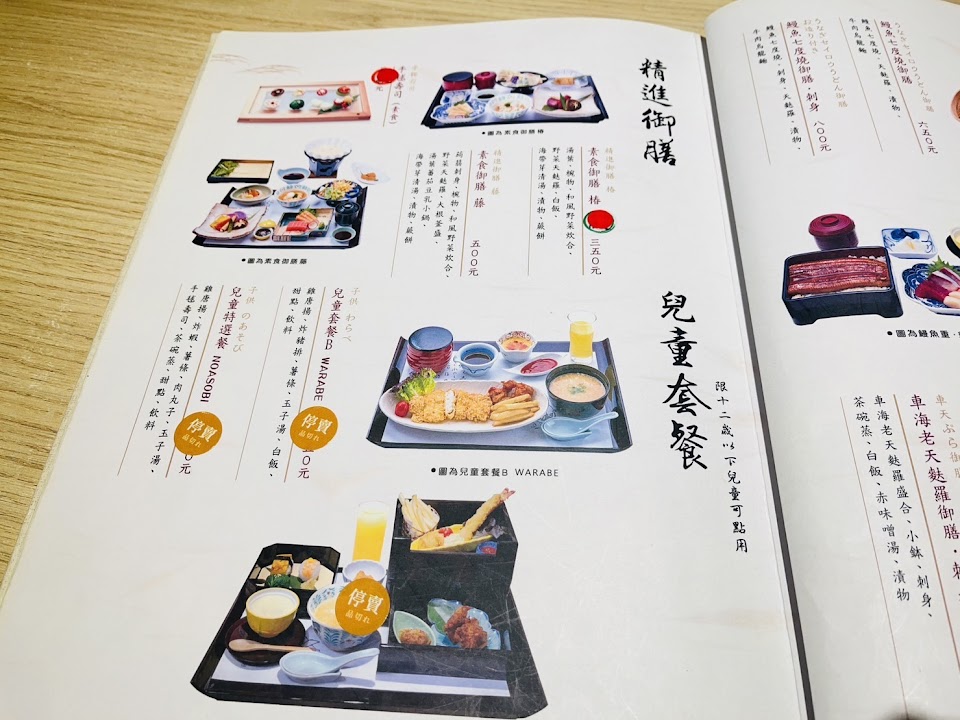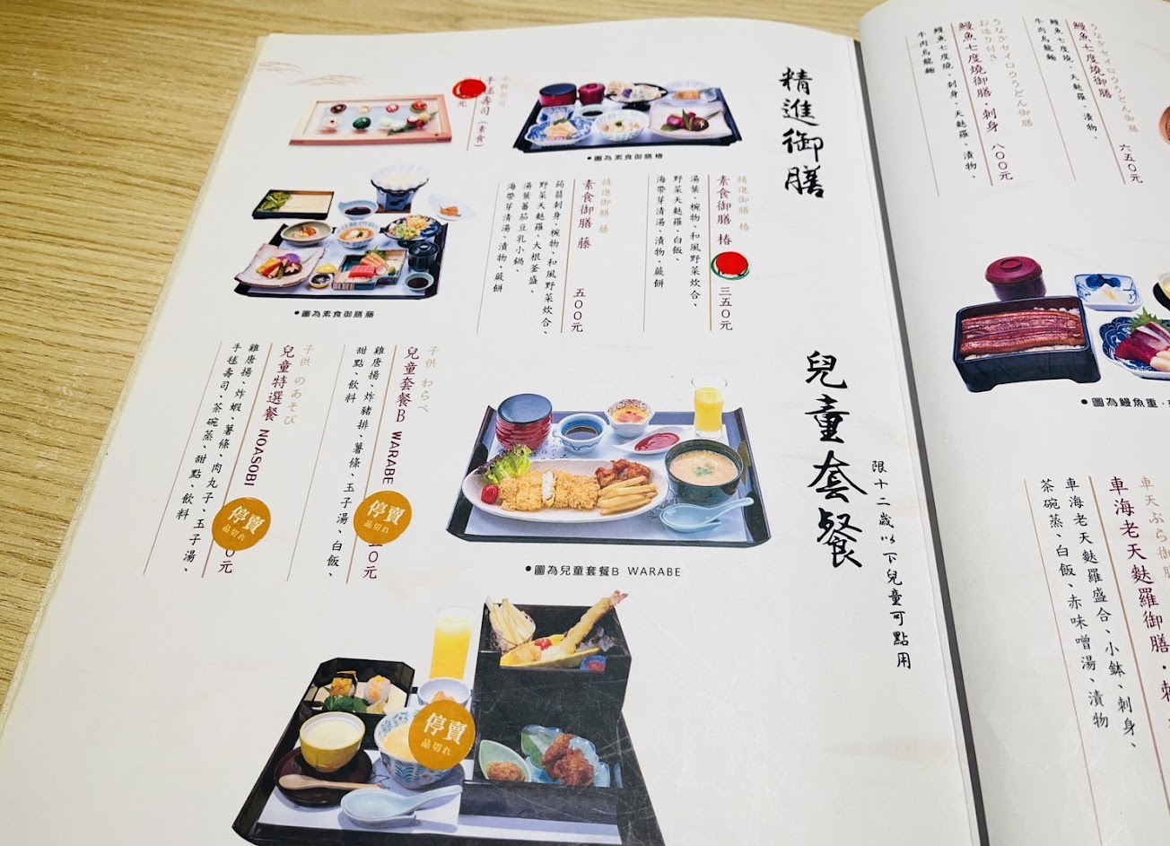 唐揚雞 豬肉鍋 日式杏仁豆腐 綜合刺身 鰻魚飯定食 白玉紅豆抹茶冰淇淋 本鮪生魚片 兒童餐